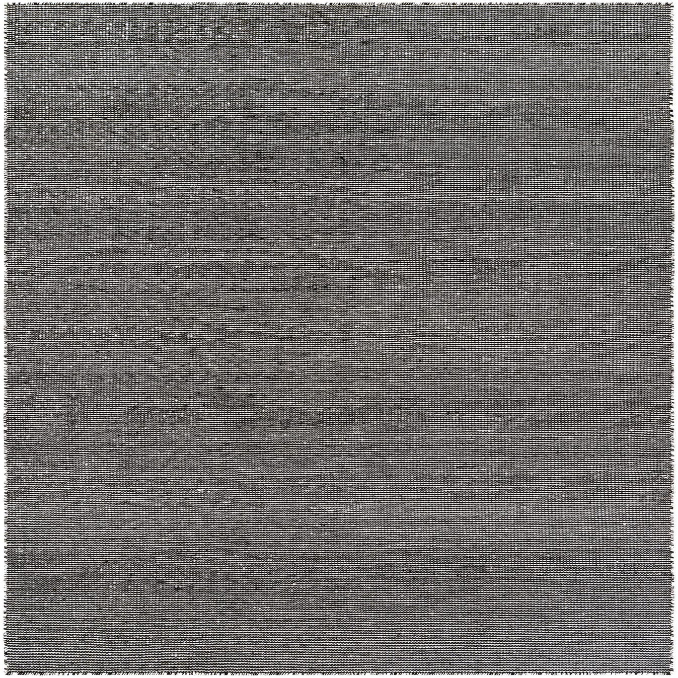 A tightly woven, low?profile flatweave in a Black Sky background with crisp Ivory accents, this rug presents a subtle linear pattern of narrow, closely spaced rows that form a soft heathered effect across the field. The hand-made construction produces a clear, slightly textured surface you can feel underfoot, and the short fringe at the ends adds a casual, finished edge. Hand Made of 100% PET Polyester (Recycled Plastic Bottles).