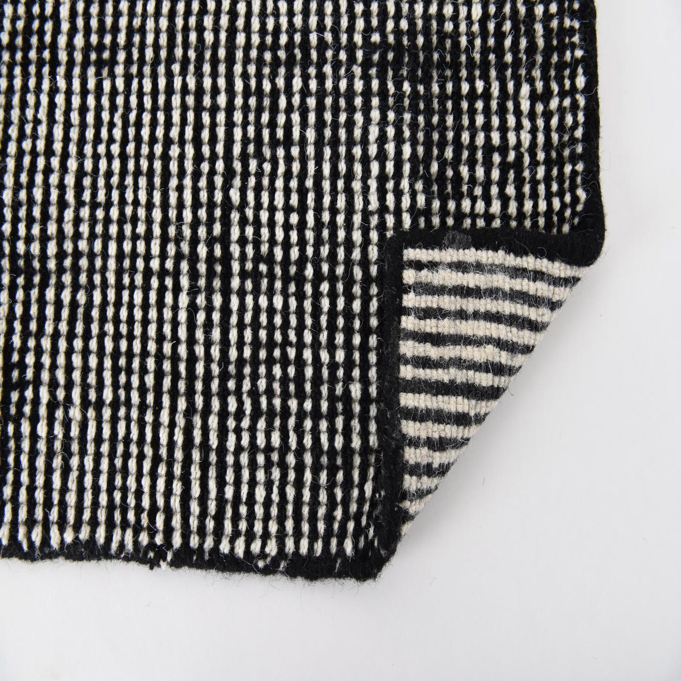 A 4 Ft Jill Zarin English Manor runner rug in black and off-white, featuring a modern, textured pattern.