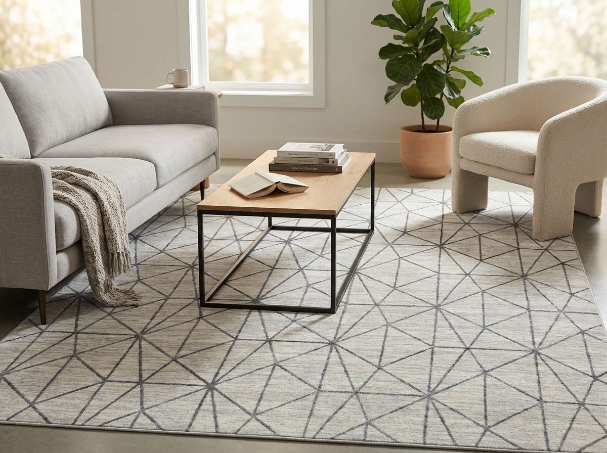 A lighter rug can make a room feel more open, calm, and ready for a fresh start.