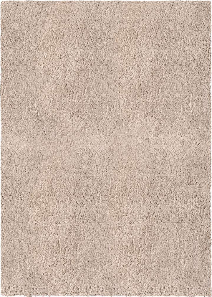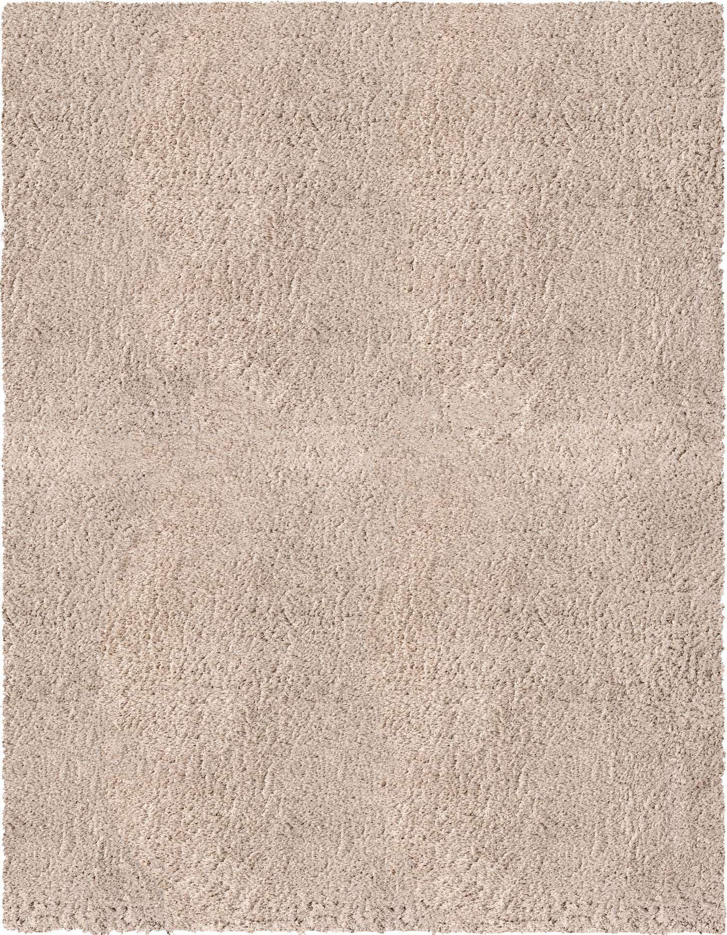 A plush, high-pile shag in a warm Blonde creates a soft, inviting surface with gentle tonal variation across the pile. The rug’s uniform field and subtle lineation come from the dense polyester fibers, giving it a relaxed, contemporary look and a velvety hand underfoot. Machine made of 100% polyester, its texture feels springy and cushioned while maintaining a clean, uncluttered appearance.