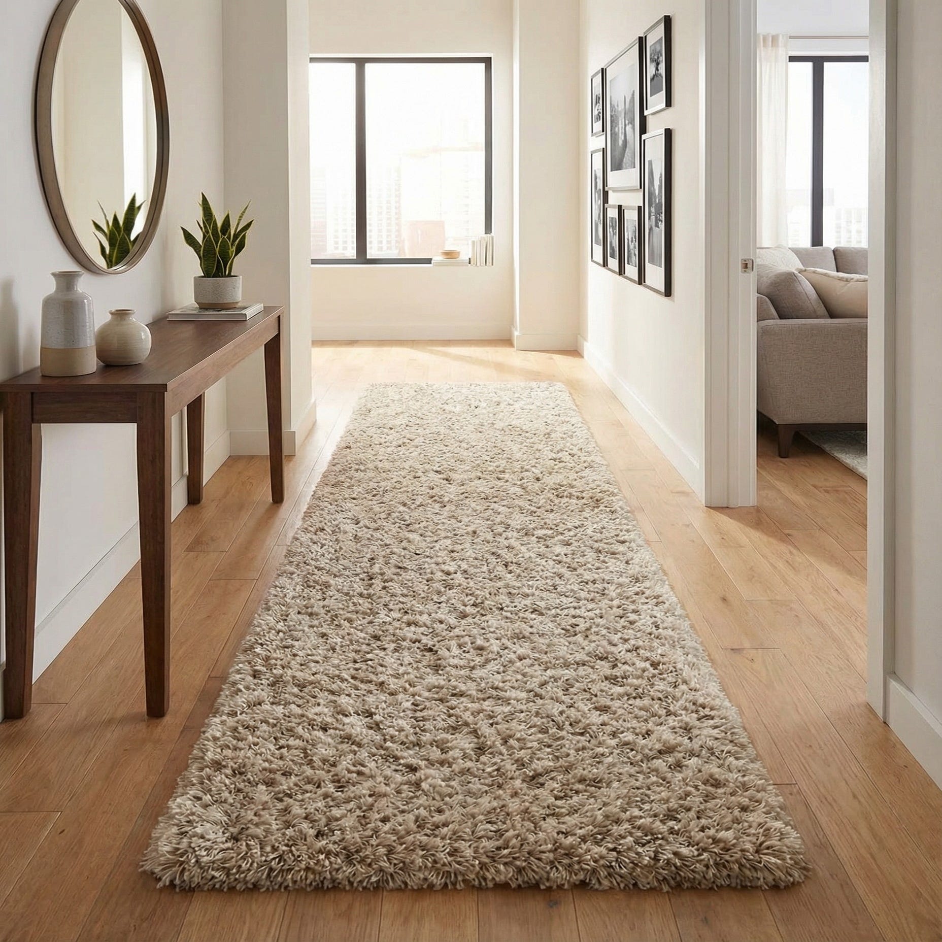 This runner brings quiet warmth to entryways, hallways, bedside areas, or a dressing room, layering comfortably over hardwood or tile. Pair it with Scandinavian or mid-century modern furniture for a calming, minimal look; add mirrored or metallic accents for a softer glam direction; or layer it in a neutral, boho setting with natural woods and woven textures. The Blonde color coordinates easily with creams, warm grays, taupes, and muted pastels for a cohesive, relaxed palette.