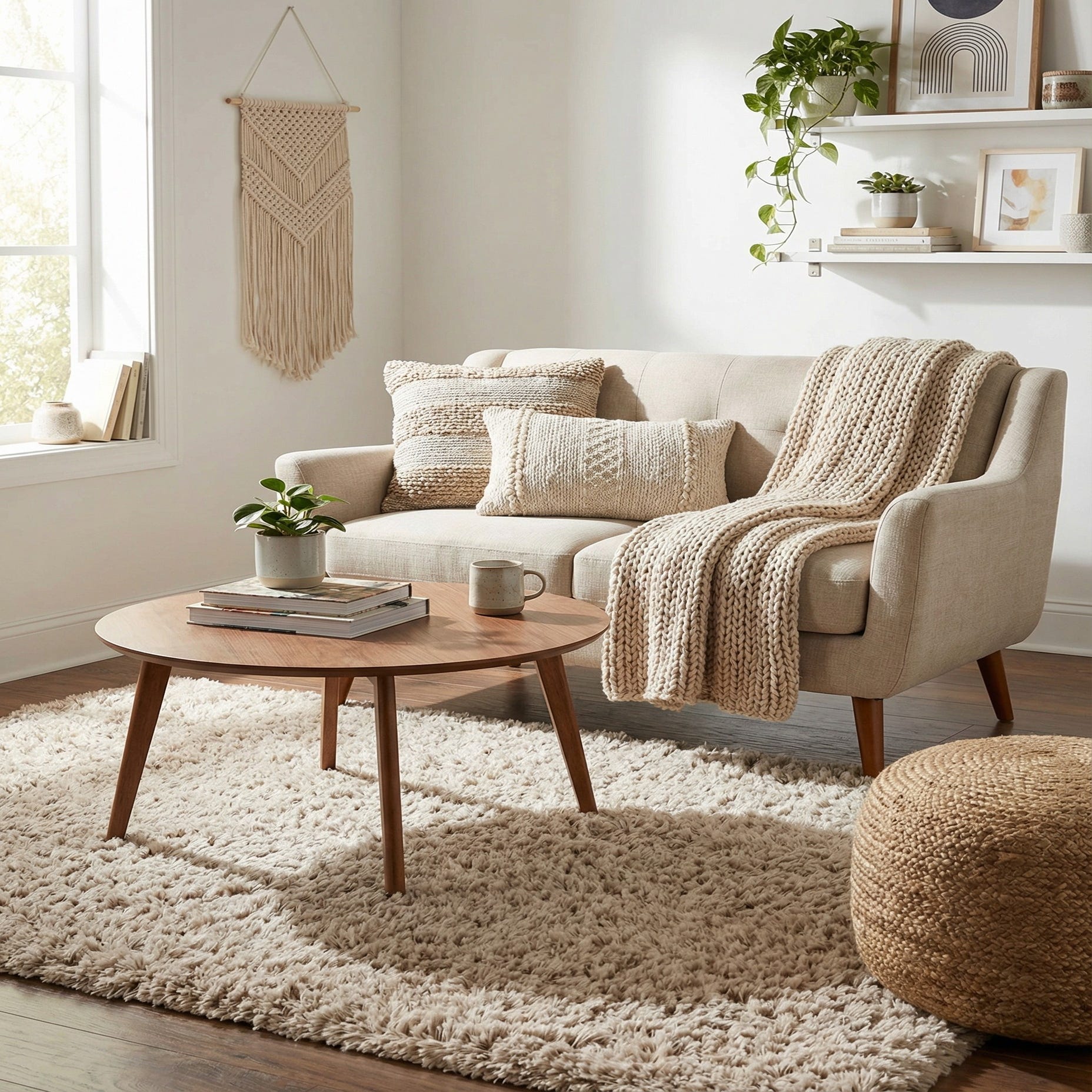 This piece works beautifully beside a bed or tucked under a small seating area where its softness can be enjoyed up close. Pair it with light-wood furnishings and neutral textiles for Scandinavian or coastal interiors, layer it over a larger flatweave to add warmth to a modern living room, or soften a leather sofa in a mid-century inspired space. Its neutral blonde color makes it an easy go-to for calming, comfortable rooms that prioritize texture and comfort.