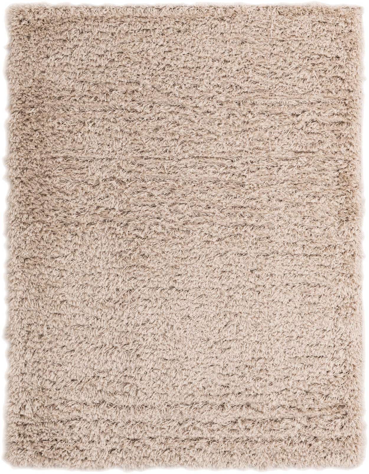 A high-pile shag in a warm Blonde tone, this rug has a long-cut polyester pile that feels soft and slightly silky underhand. The surface shows subtle linear variations created by the pile direction, giving the neutral field gentle visual movement without a busy pattern. Machine-made and crafted from 100% polyester, the construction delivers an even, plush texture and clean edge definition.
