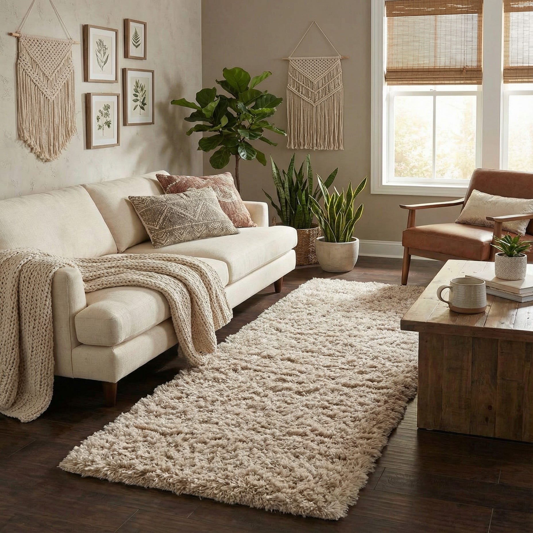 Designed in a runner format, it works well in hallways, entryways, alongside beds, or in front of sofas where a soft underfoot feel is desirable. It pairs naturally with light wood floors, neutral upholstery, and minimalist or Scandinavian interiors that benefit from added texture, and it can also warm up transitional spaces when layered with simple geometric accents or leather furniture.