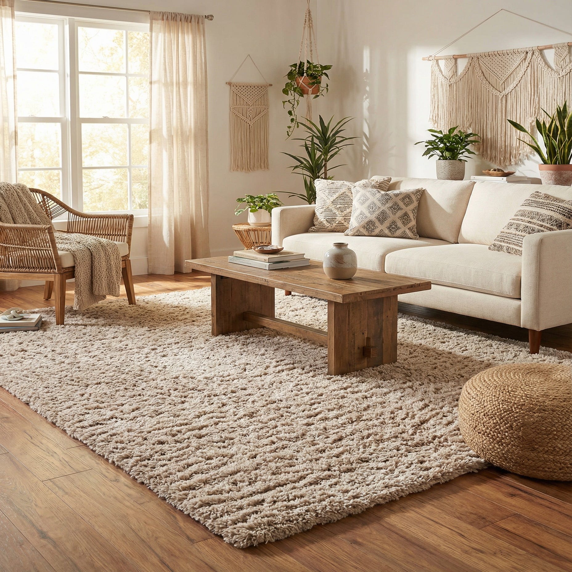 This rug works well layered under a low-profile sofa in a contemporary living room, tucked beneath a bed to add warmth to a bedroom, or placed in a family room to soften harder flooring. The neutral Blonde pairs easily with natural wood tones, cream upholstery, and metallic accents, making it a good fit for Scandinavian, transitional, and relaxed modern interiors where texture and comfort are priorities.