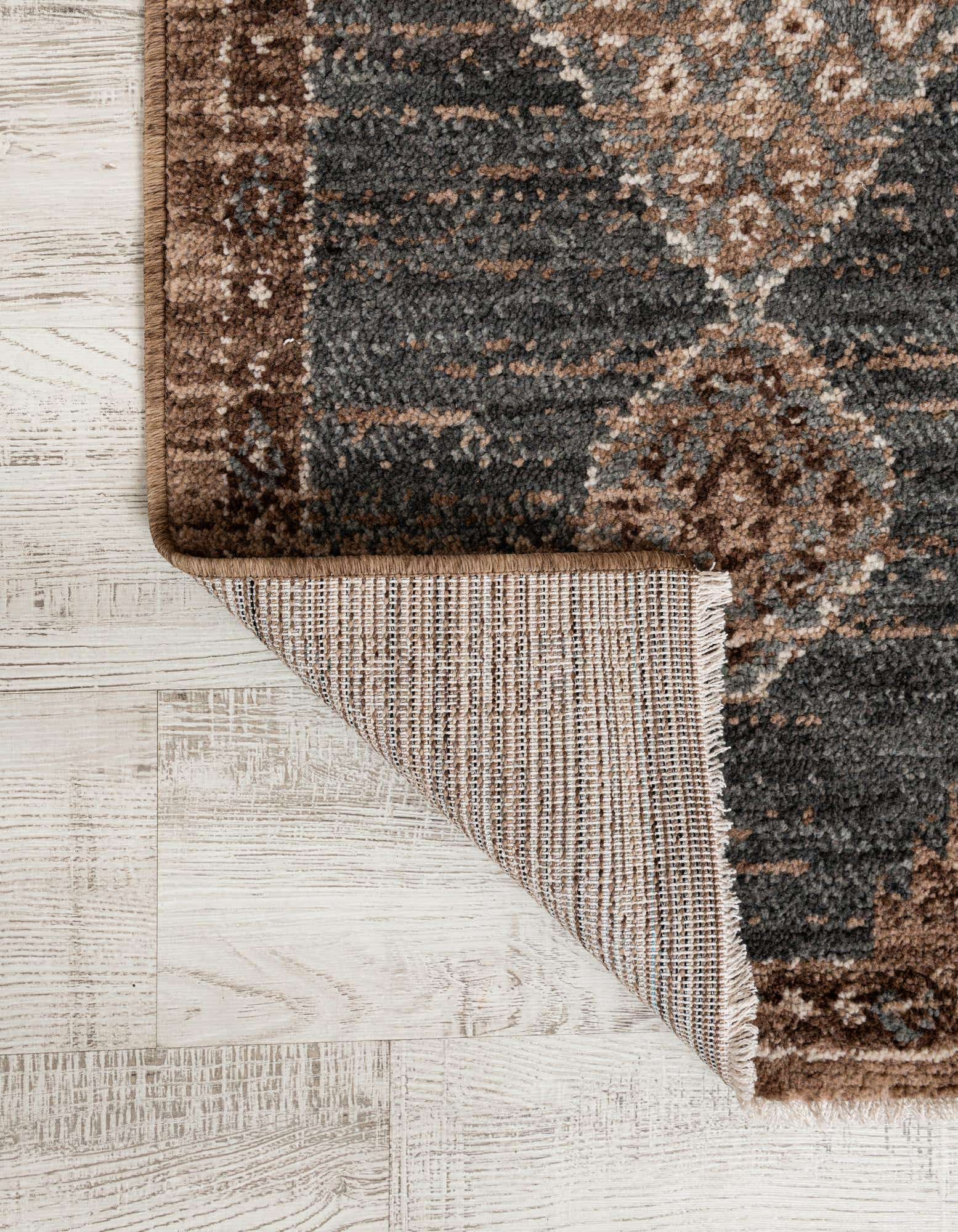 Primary color is Blue. Colors in this rug include: Blue, Brown, Ivory.