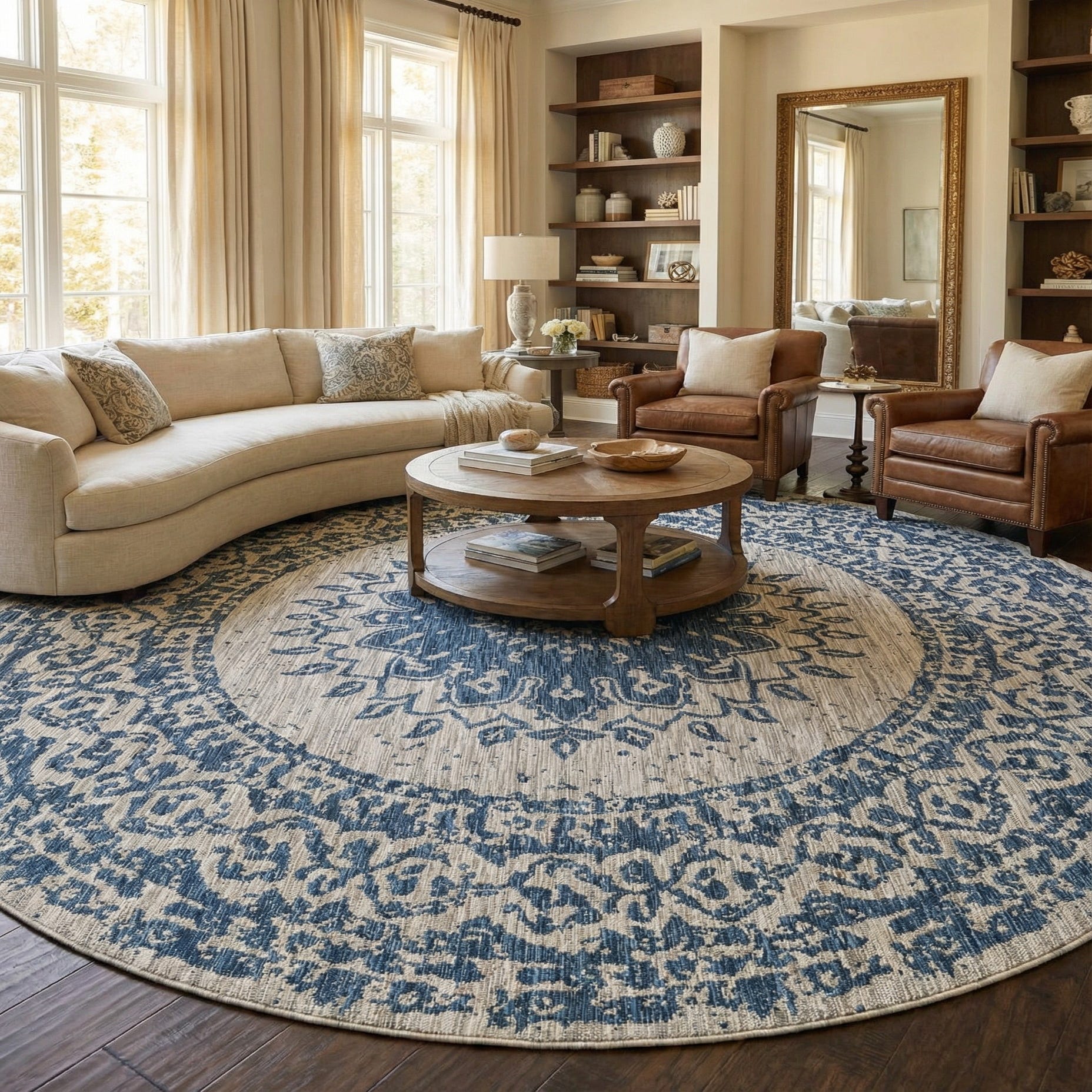 10' x 10' Washable Traditional Indoor / Outdoor Round Rug