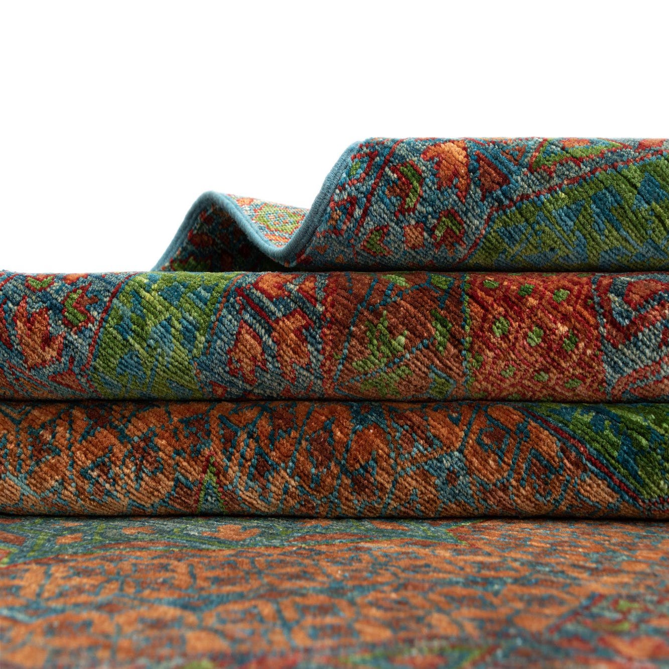 The woolen texture ensures a soft and inviting underfoot experience, while the density of the weave offers a substantial feel. This rug would be well-suited in a variety of decor settings, from classic to eclectic. It can serve as a defining element in a hallway or entryway, complementing wooden flooring or adding a contrast to contemporary tiles. The rich composition of colors allows for versatile coordination with wood furniture, upholstery, and drapery. The Amina runner embodies an enduring style that stands apt for timeless interiors.