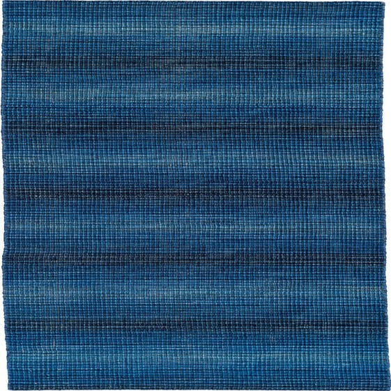 A 10 ft runner rug from the Darya collection featuring horizontal stripes in varying shades of blue, made of wool.