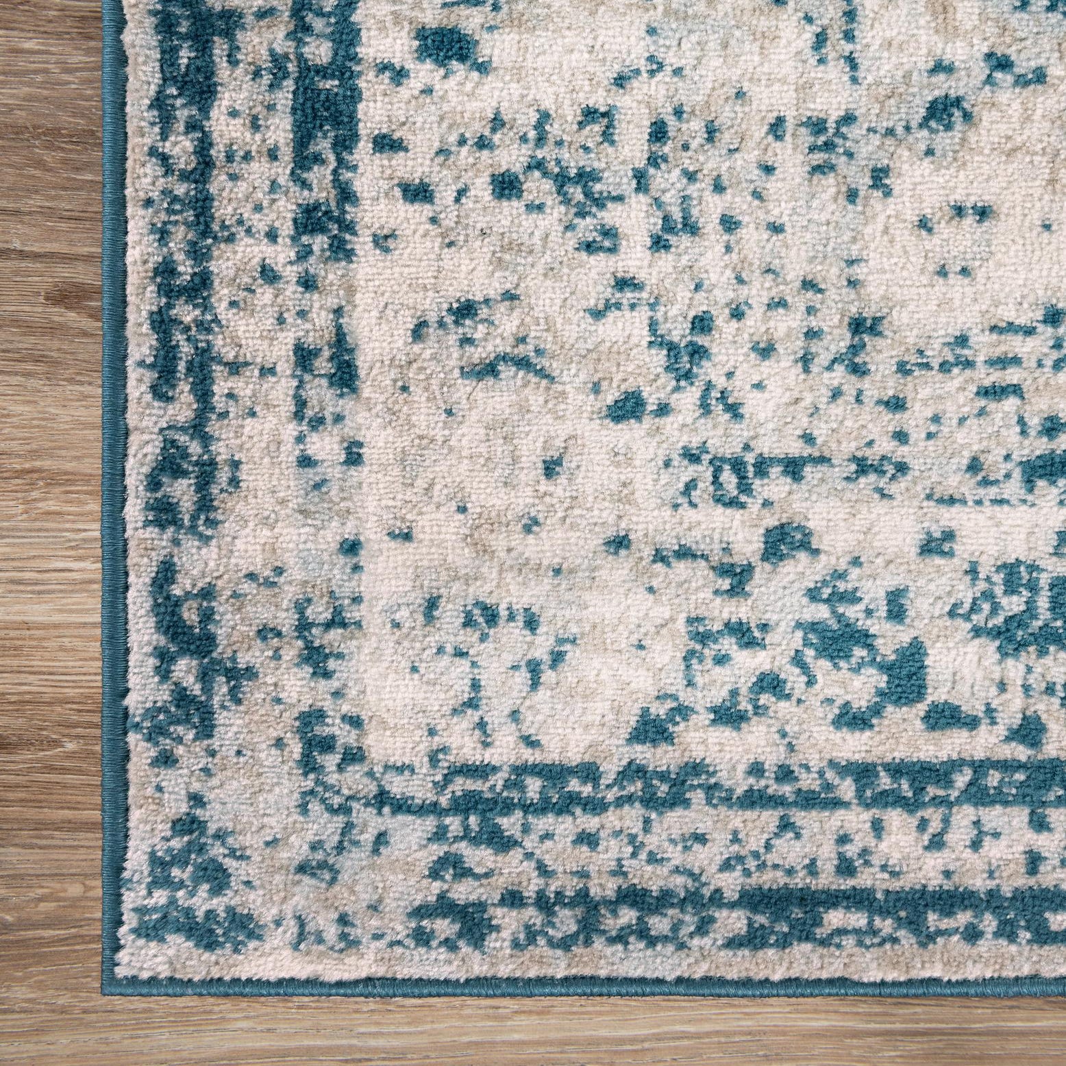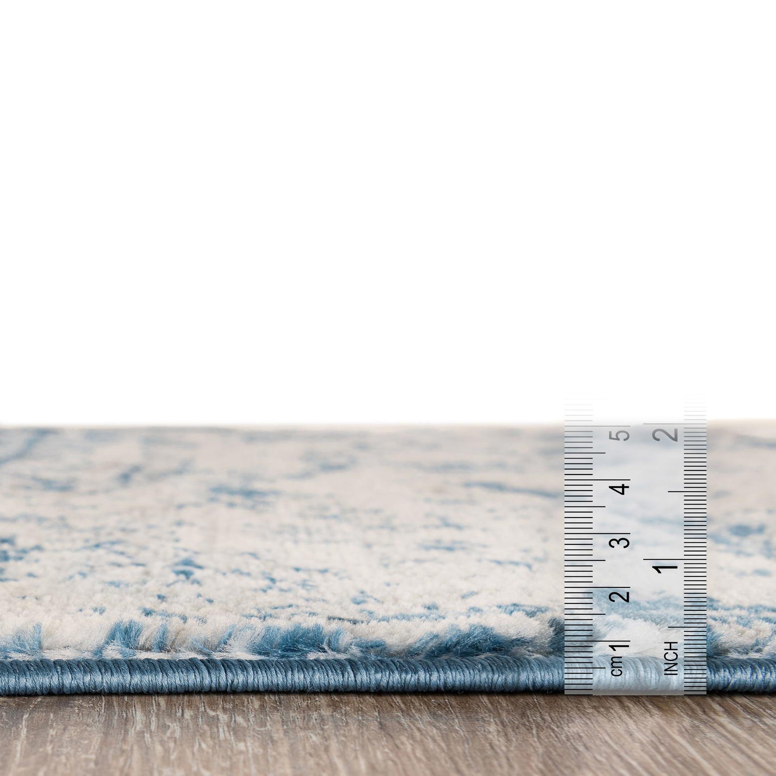 Primary color is Blue. Colors in this rug include: Blue, Beige, Ivory, Light Blue.