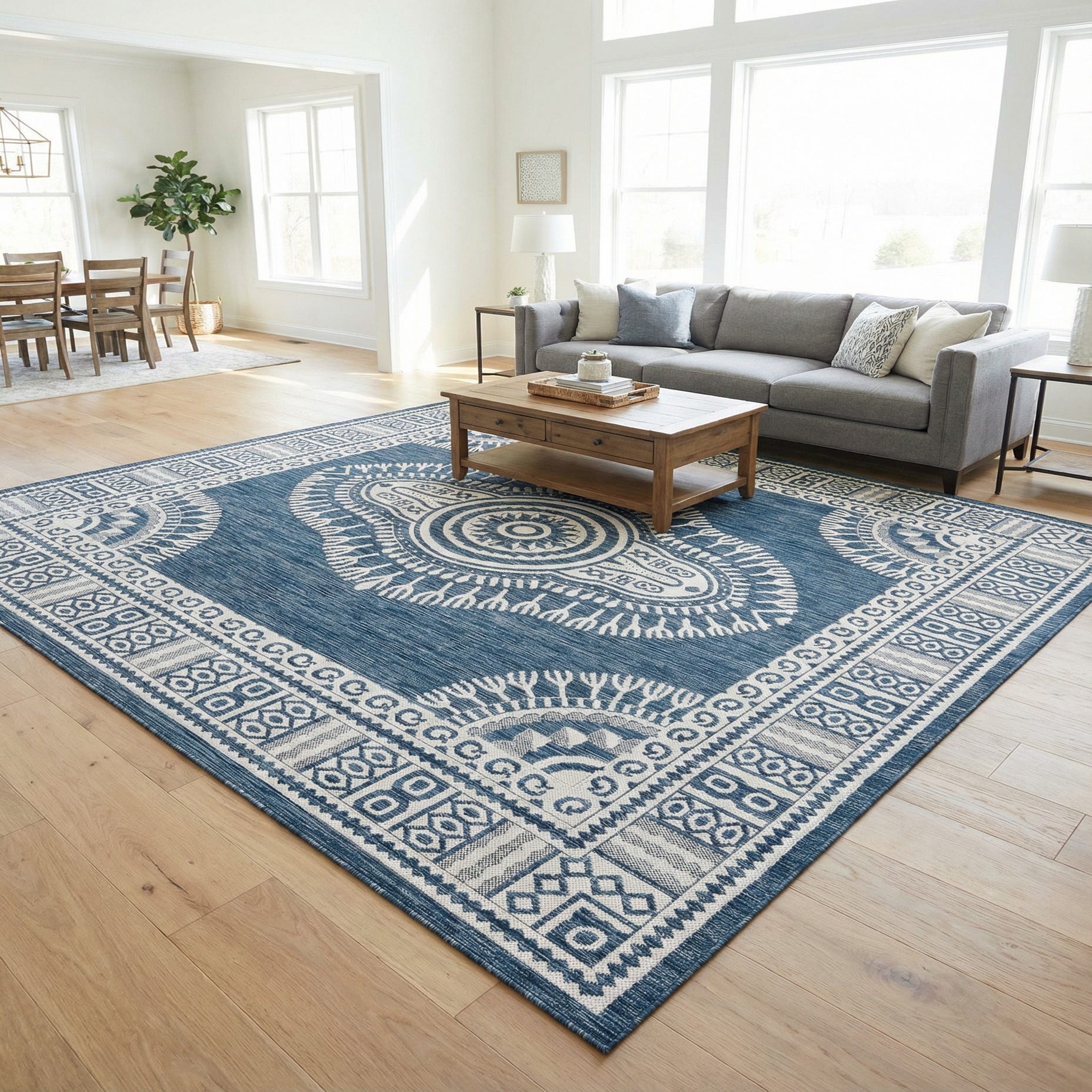 10' x 10' Washable Traditional Indoor / Outdoor Square Rug