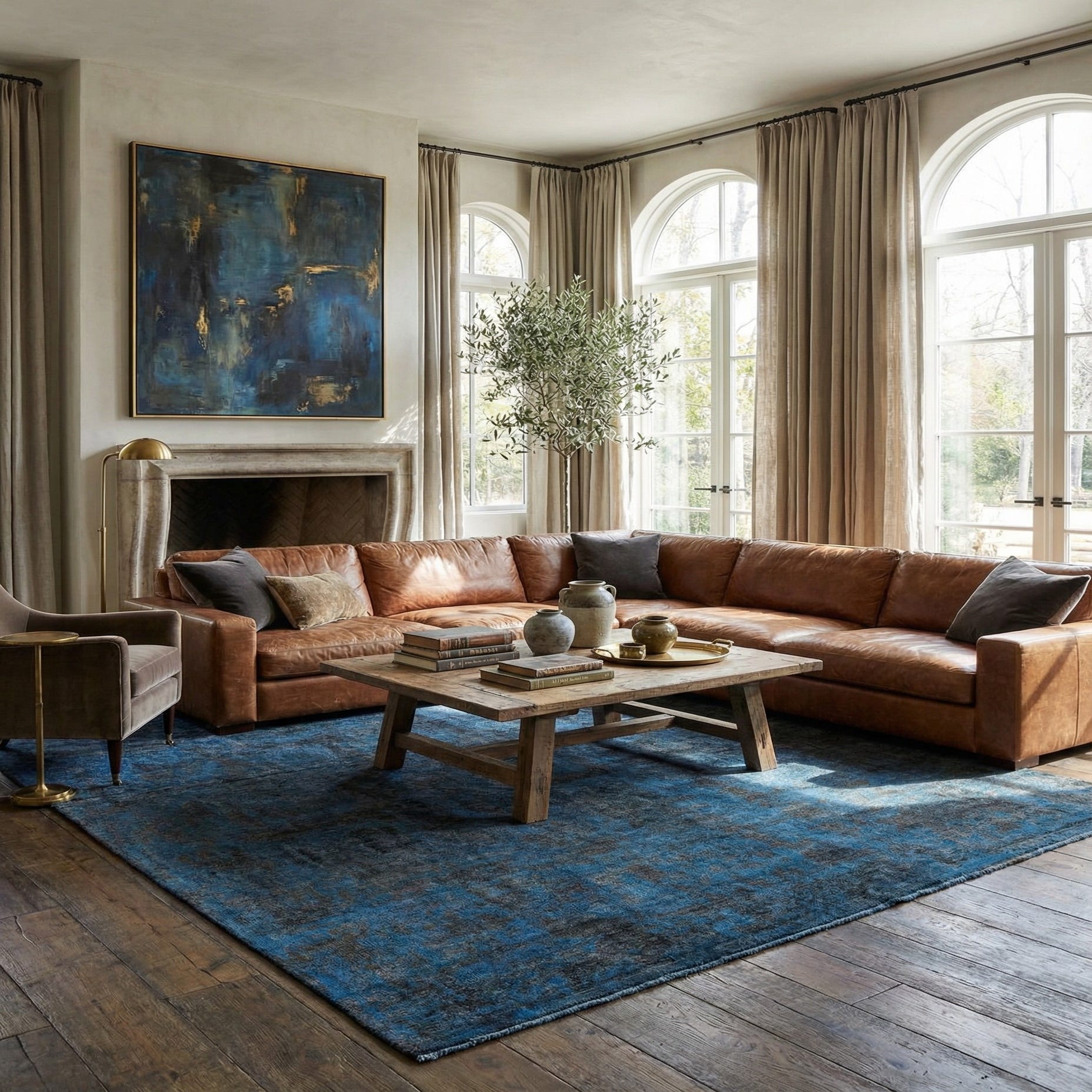 Underfoot the wool pile feels soft and dense, with the hand-knotted construction giving the rug a substantial, tactile presence and gentle variations that add character. Use this piece to anchor a modern living room with leather seating, bring warmth to an industrial loft with metal and concrete finishes, or add a calm, layered look in a bedroom beneath a low-profile bed. It also pairs well with warm woods, matte black accents, and neutral linens for a balanced, collected interior.