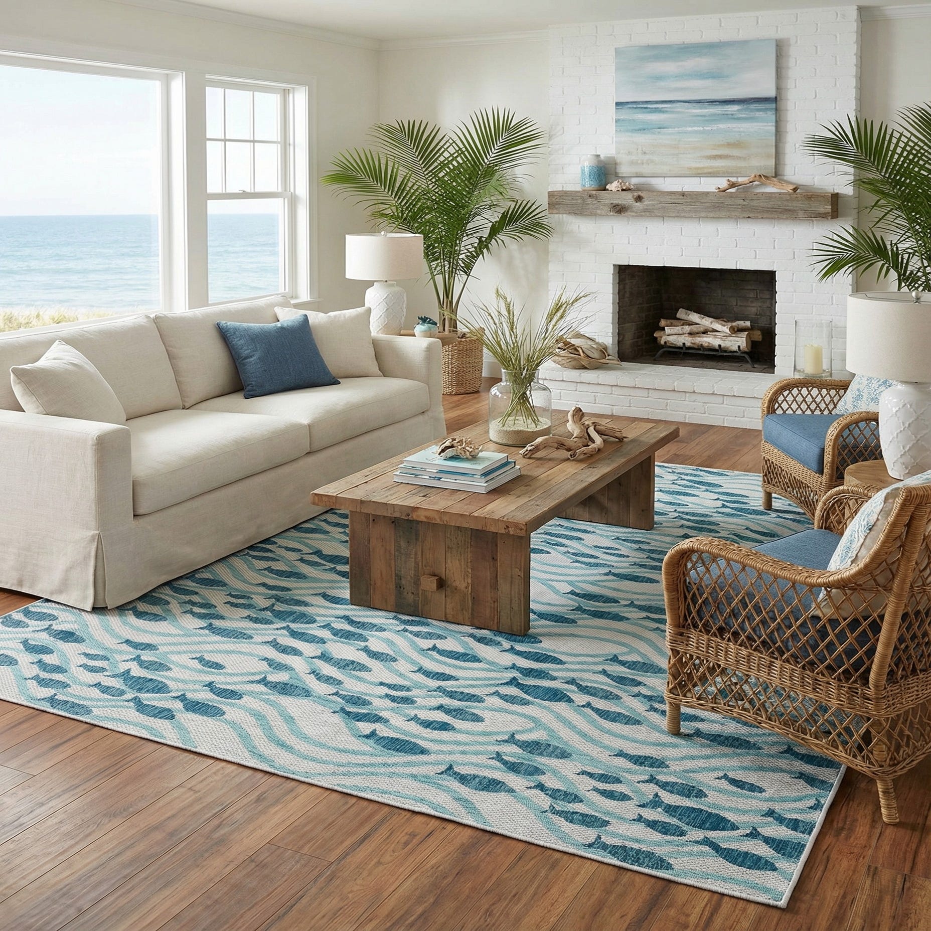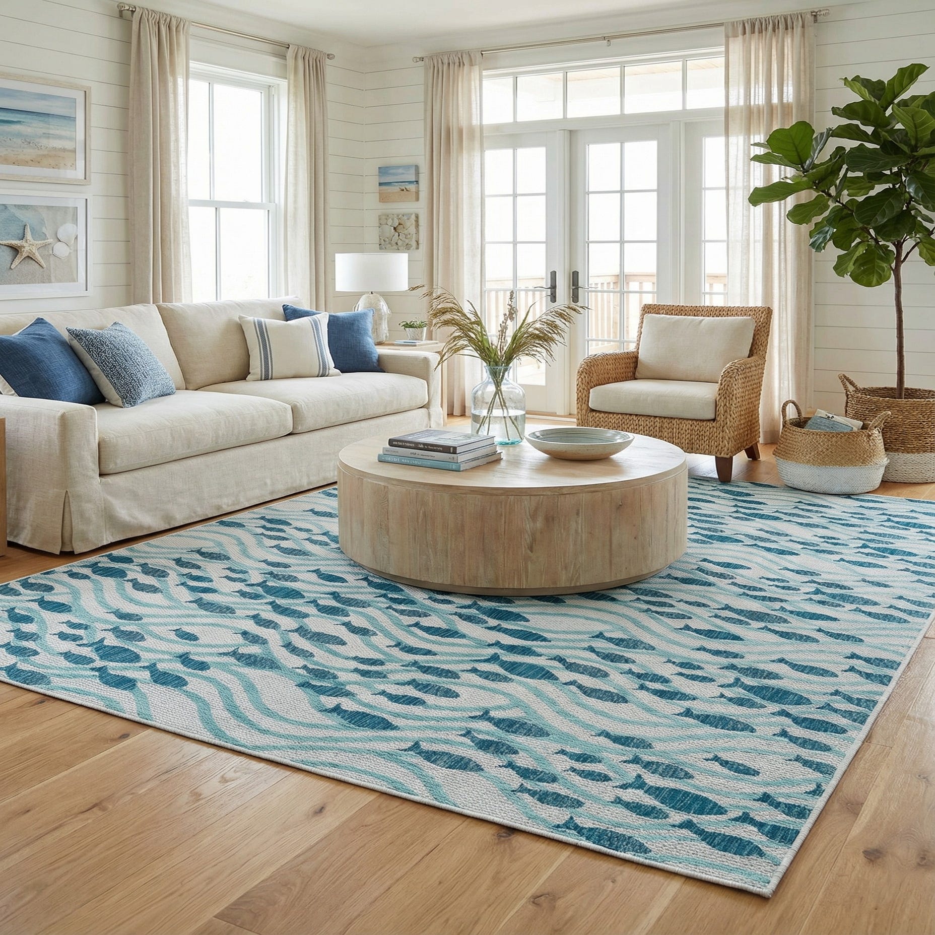 10' x 13' Washable Coastal Indoor / Outdoor Rug