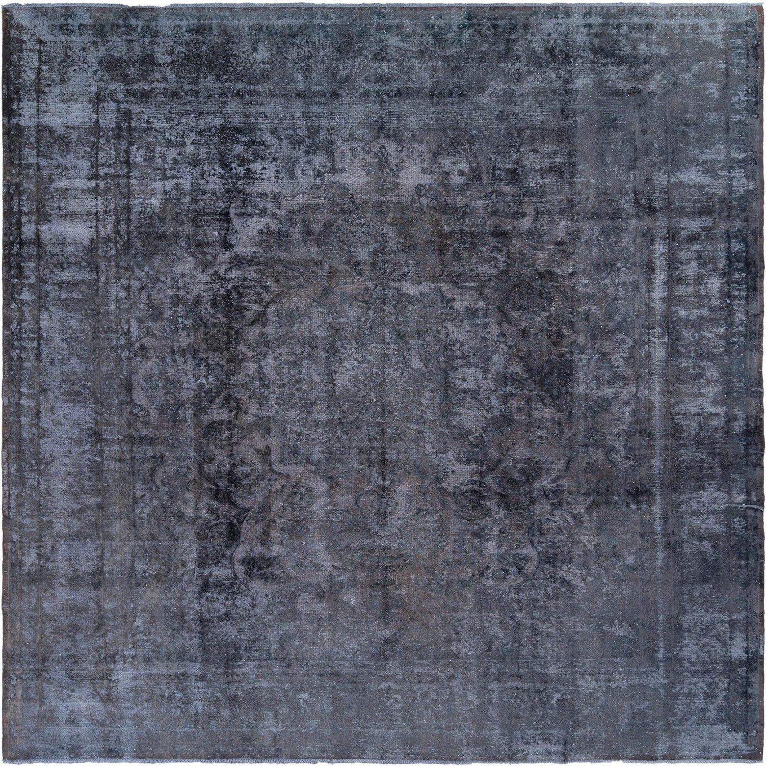 A 10x13 rectangular blue Persian area rug with a distressed vintage pattern, handmade from wool.