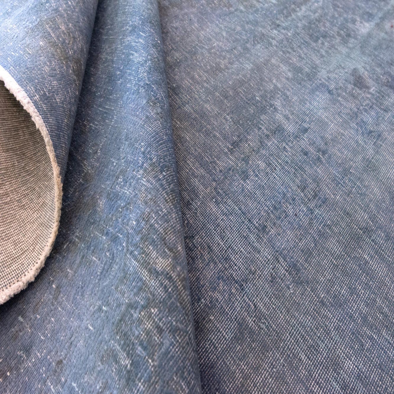 A 10x13 rectangular blue Persian area rug with a vintage, distressed look, suitable for a living room.