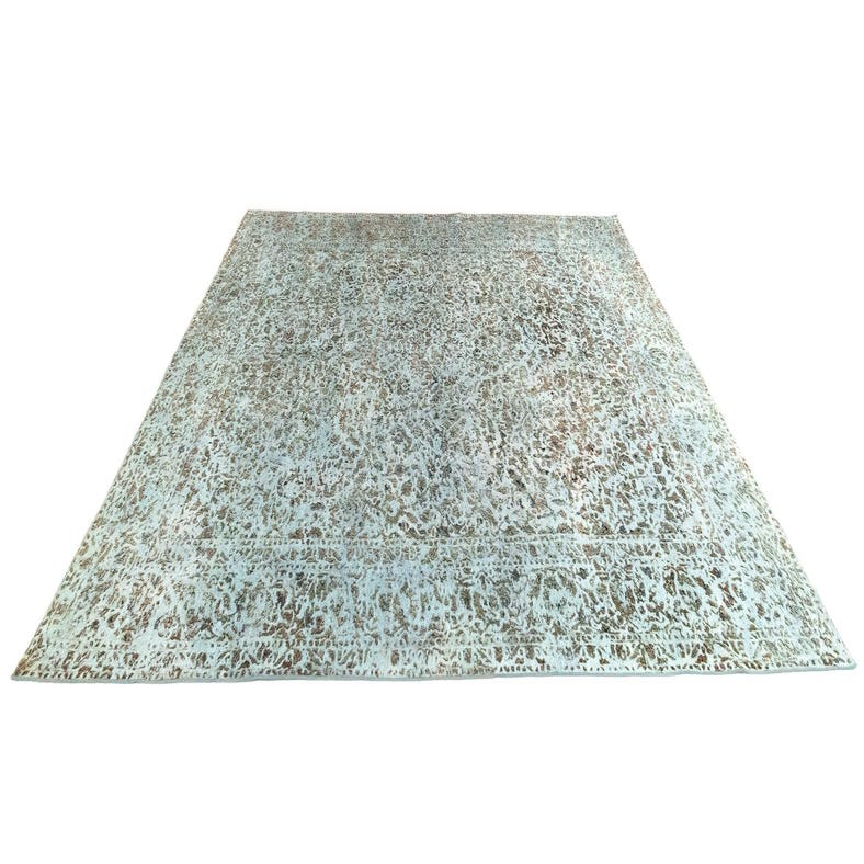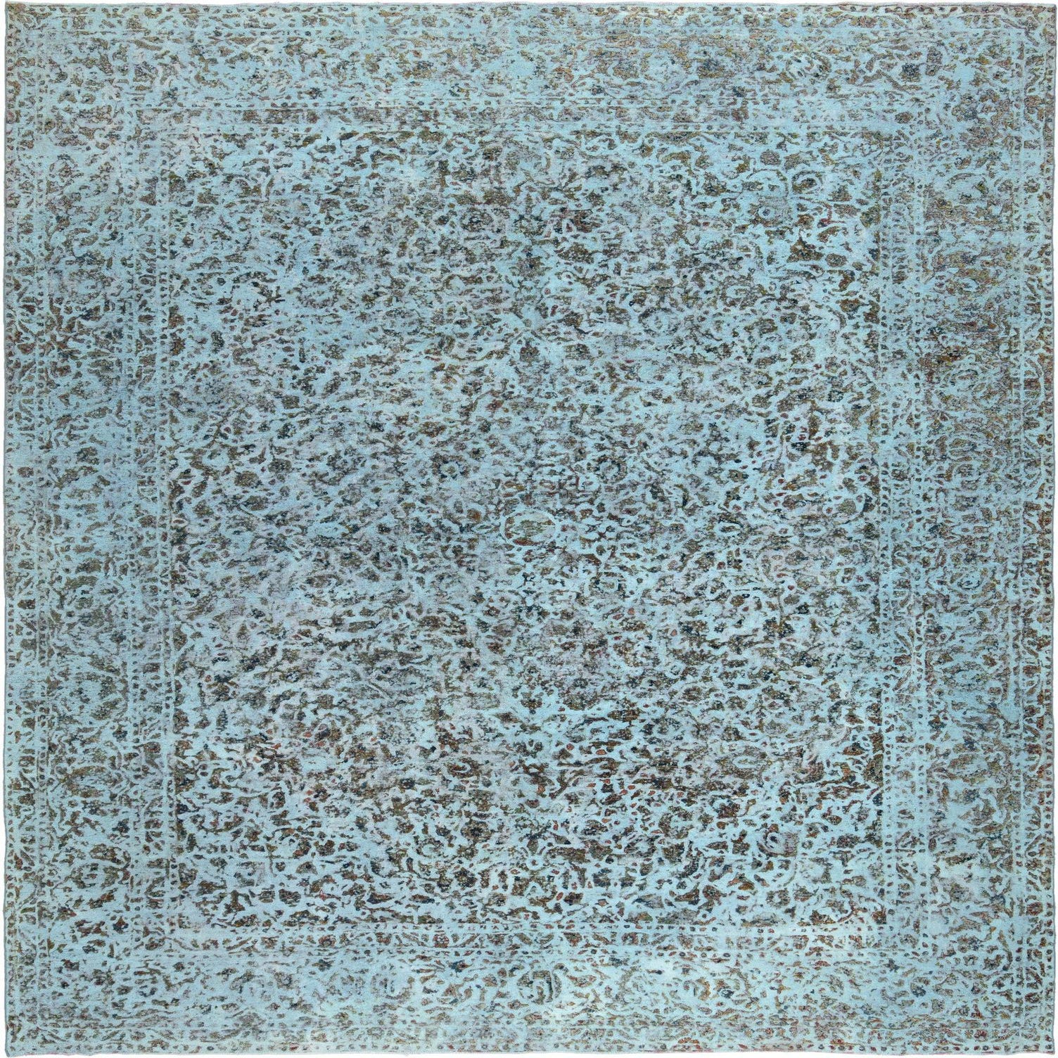 A 10x13 rectangular blue Persian area rug with an intricate, distressed floral pattern and a medium pile.