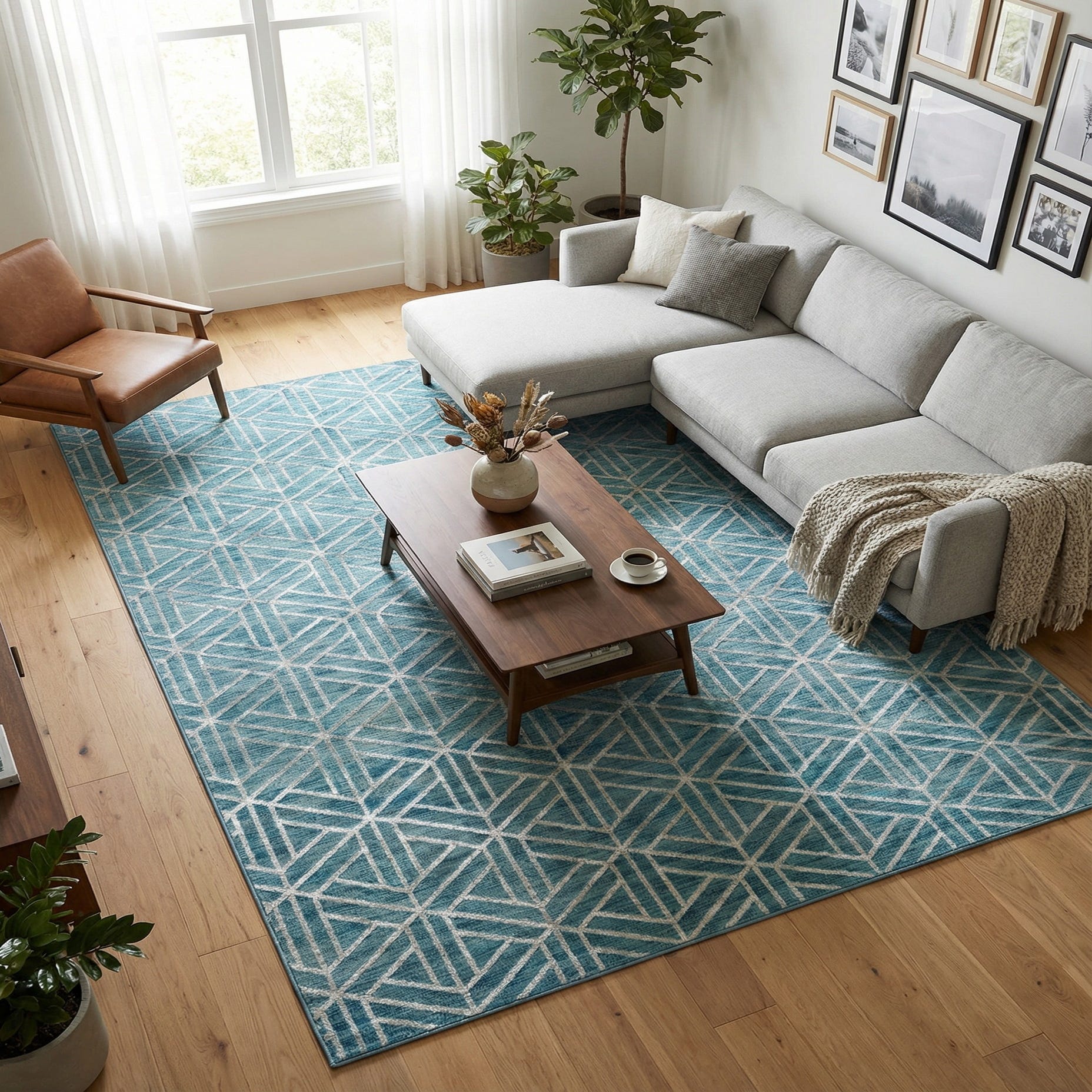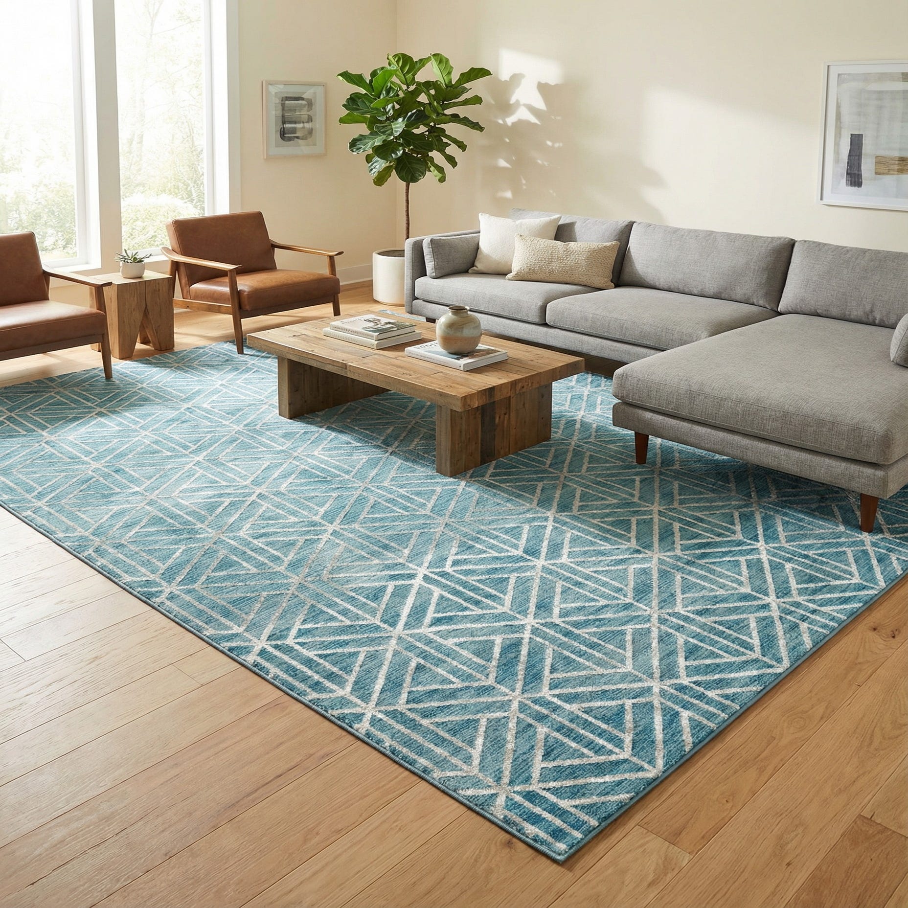 This rug pairs well with clean-lined, contemporary furnishings as well as transitional settings that mix modern and traditional elements. Use it to anchor a living room seating area, define a home office, or add color and pattern beneath a dining table. Blue and ivory combine easily with natural wood tones, white or light-gray upholstery, and warm metallic accents for a fresh, layered look.