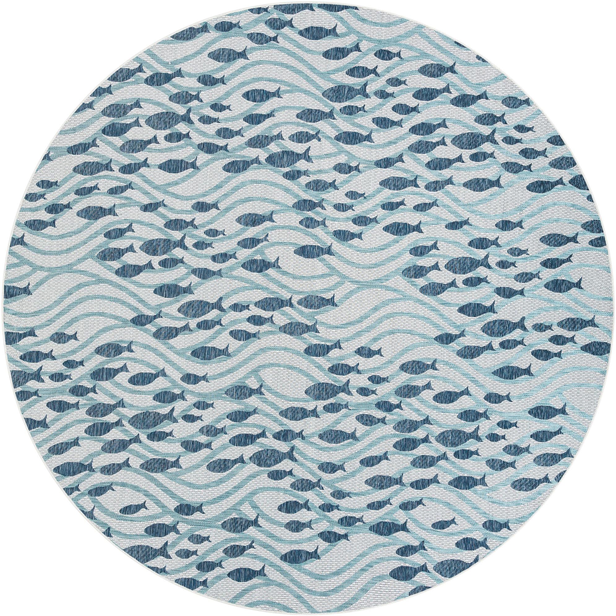12' x 12' Washable Coastal Indoor / Outdoor Round Rug
