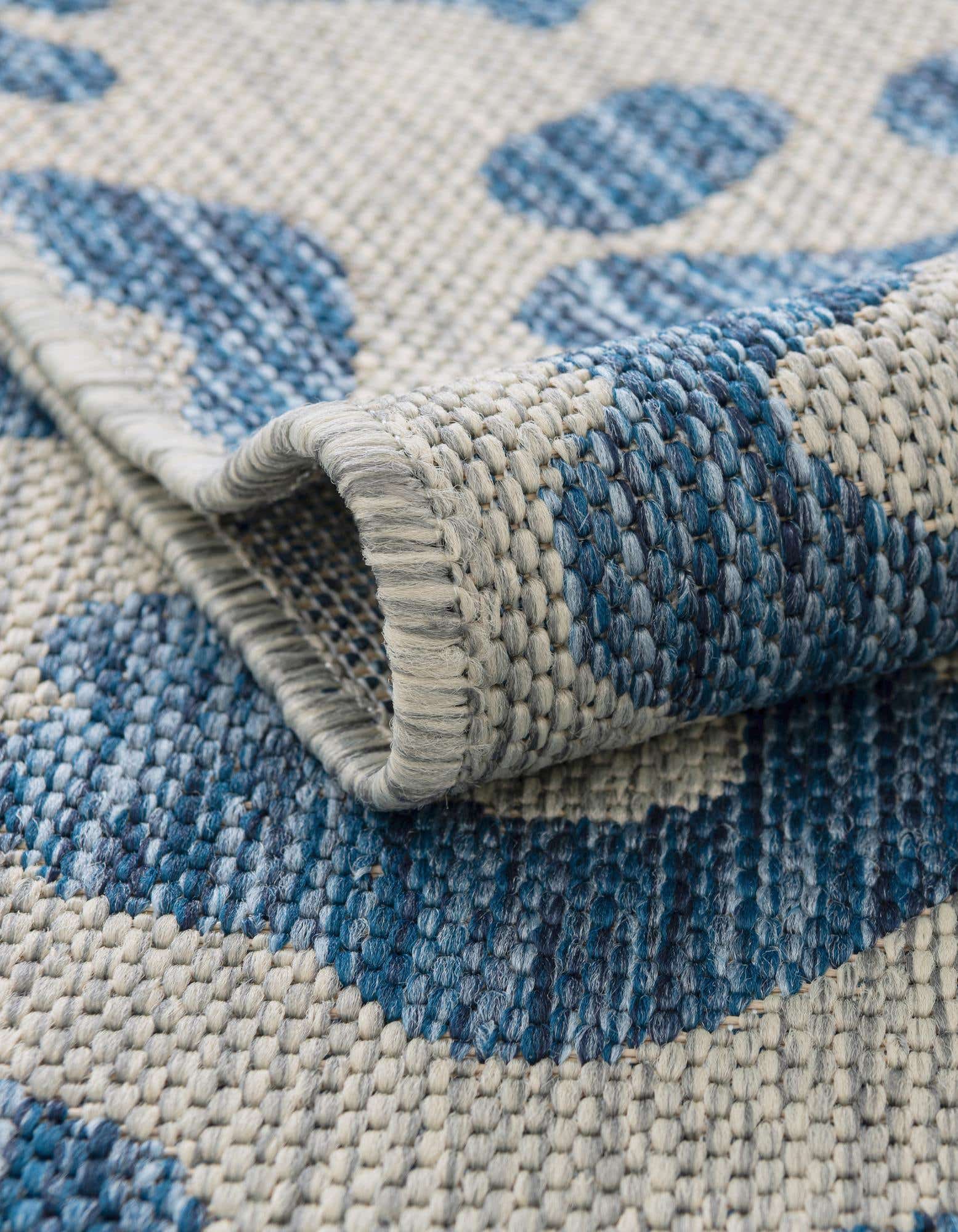 This Outdoor Safari Collection rug features a bold leopard print pattern that captures the essence of adventurous outdoor style. With a dominant blue background complemented by gray accents, this 12 ft round rug offers a contemporary twist on classic animal print designs. Constructed from 100% polypropylene, the rug is designed to withstand the elements, making it an ideal choice for both outdoor spaces and high-traffic indoor areas.