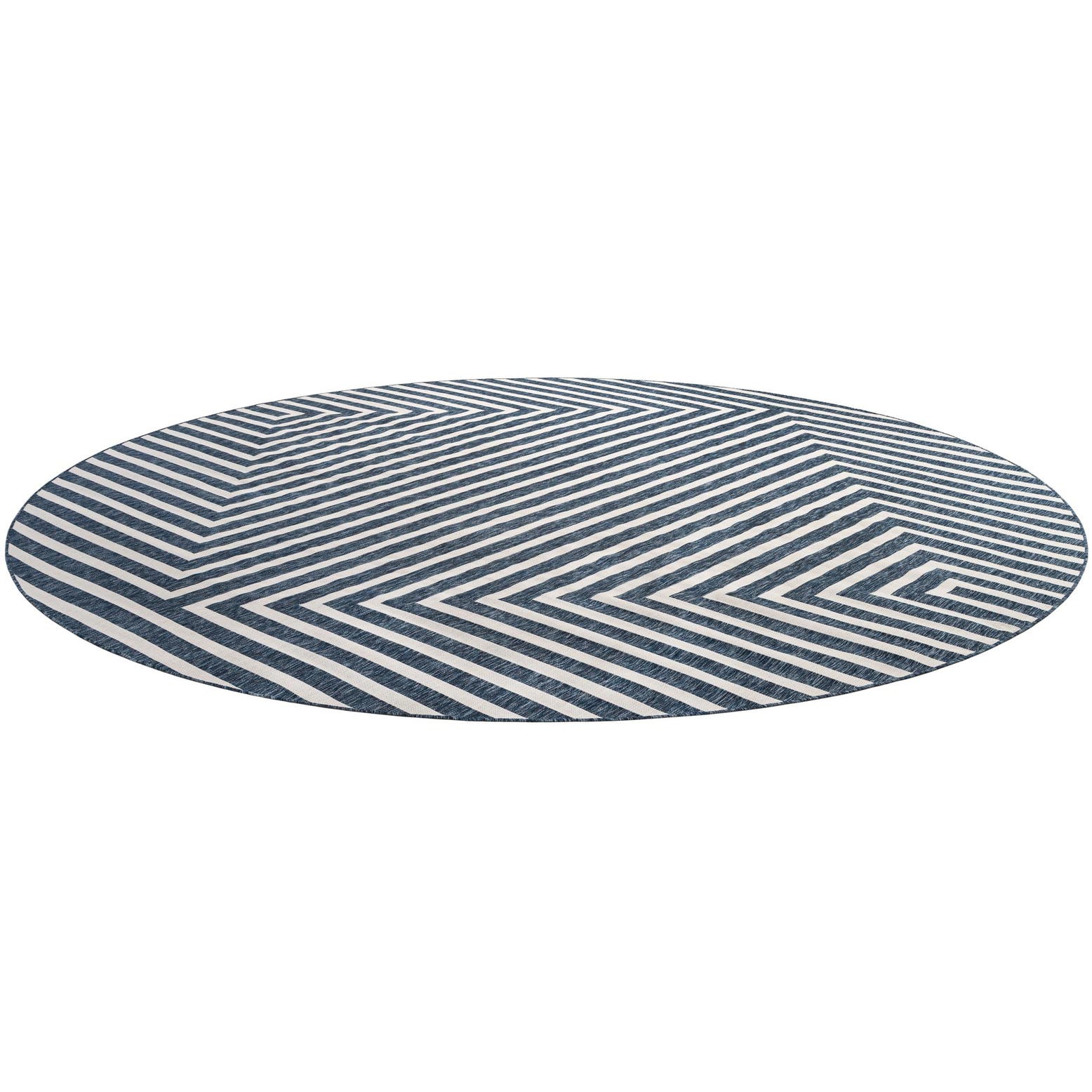 Machine-made from 100% polypropylene, this rug works well in a variety of settings: place it on a covered patio or poolside lounge for a contemporary outdoor vibe, layer it in a sunroom with wicker and natural wood furniture, or use it to anchor a round dining area or conversation nook in a modern living room. Pair with neutral seating and simple accessories to let the graphic pattern stand out, or mix with coastal accents for a fresh, relaxed feel.