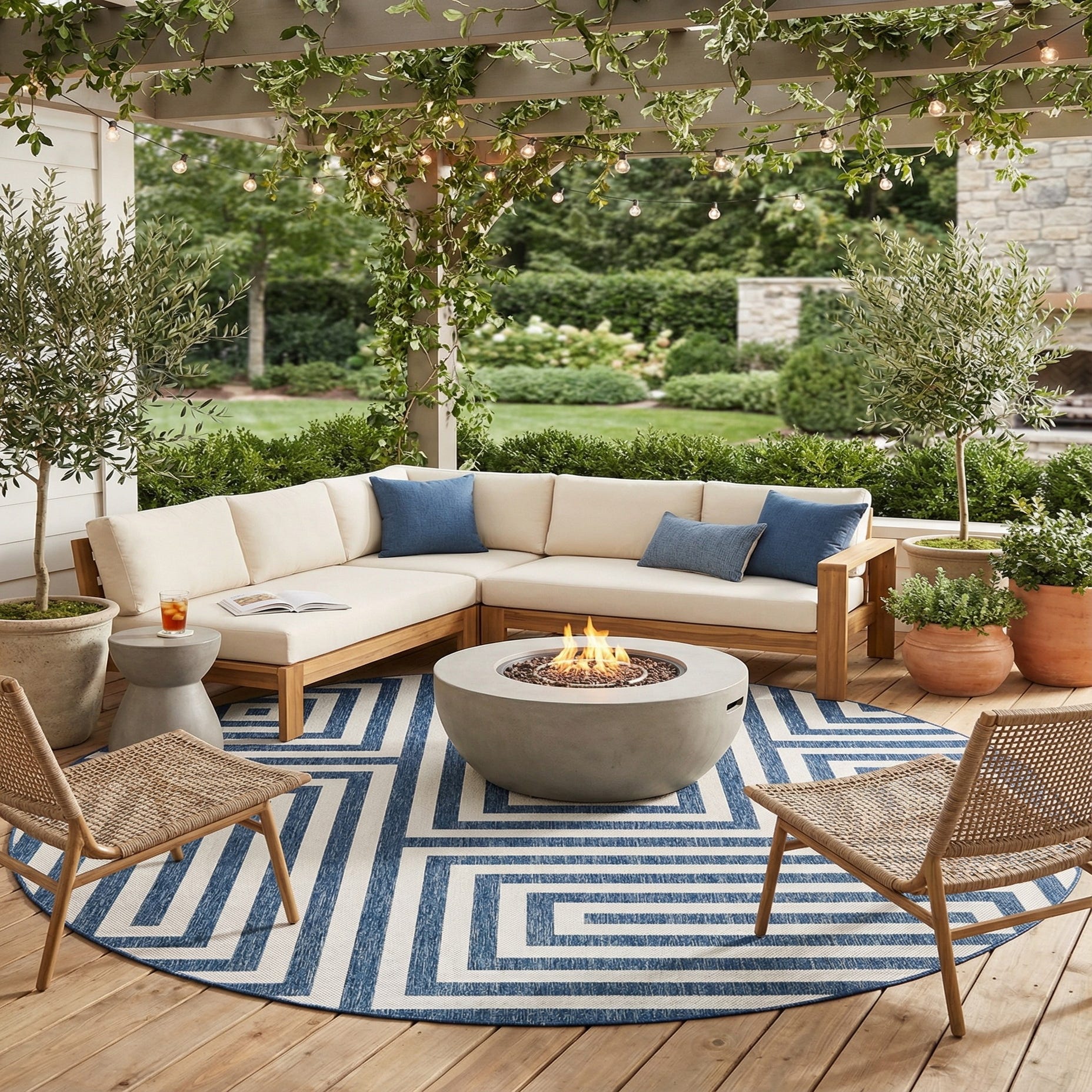 13' x 13' Washable Modern Indoor / Outdoor Round Rug