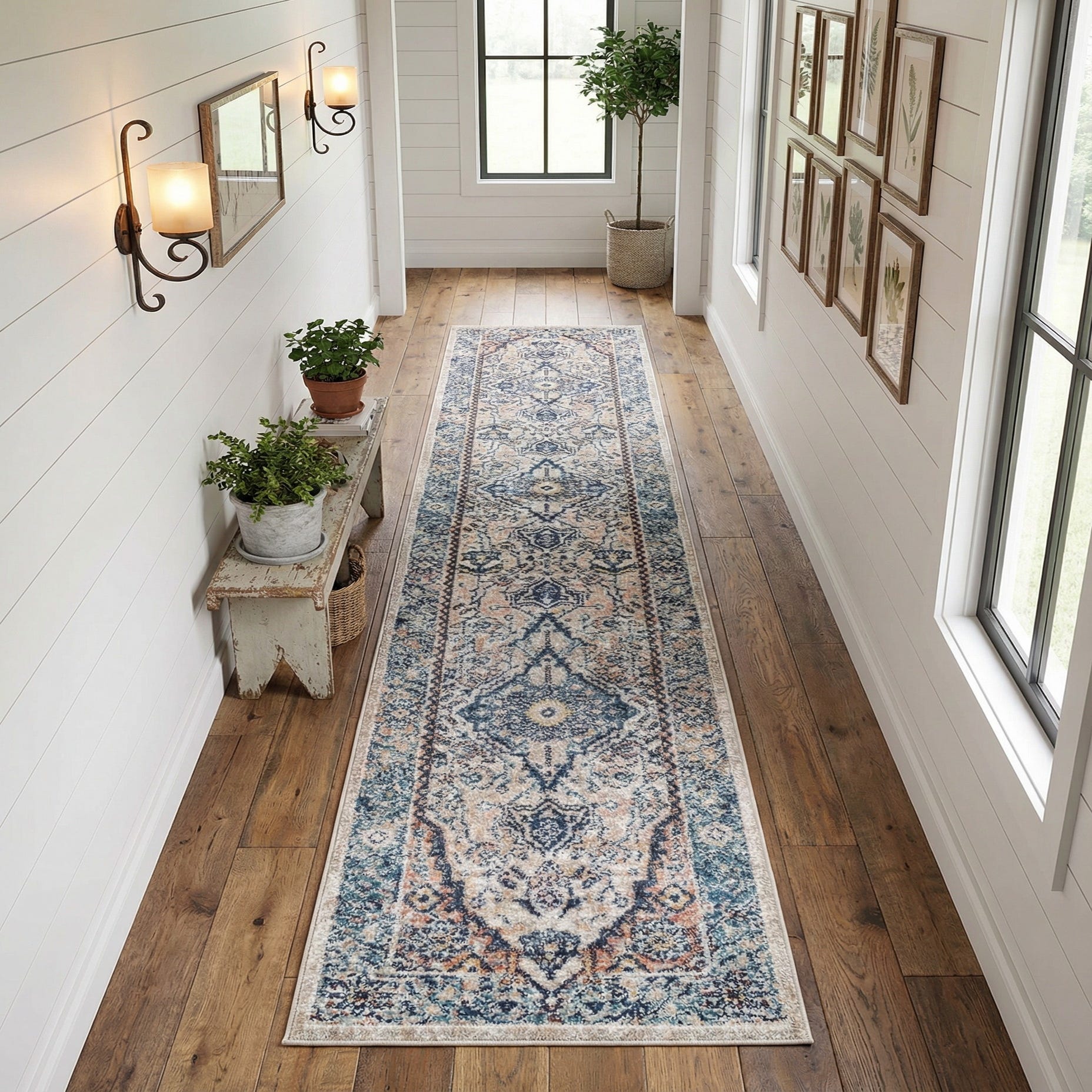 The low-to-medium pile has a smooth, slightly plush hand that sits comfortably underfoot while allowing doors and furniture to clear easily. Durable polypropylene construction keeps the patterned color variation crisp and suited to everyday use in hallways, entryways or alongside a bed. Pair it with lightwashed wood floors and pale walls for a coastal-transitional vibe, anchor a narrow foyer with navy seating and brass accents for a tailored traditional look, or layer it with warm woods and textured textiles for a cozy farmhouse or eclectic boho setting.