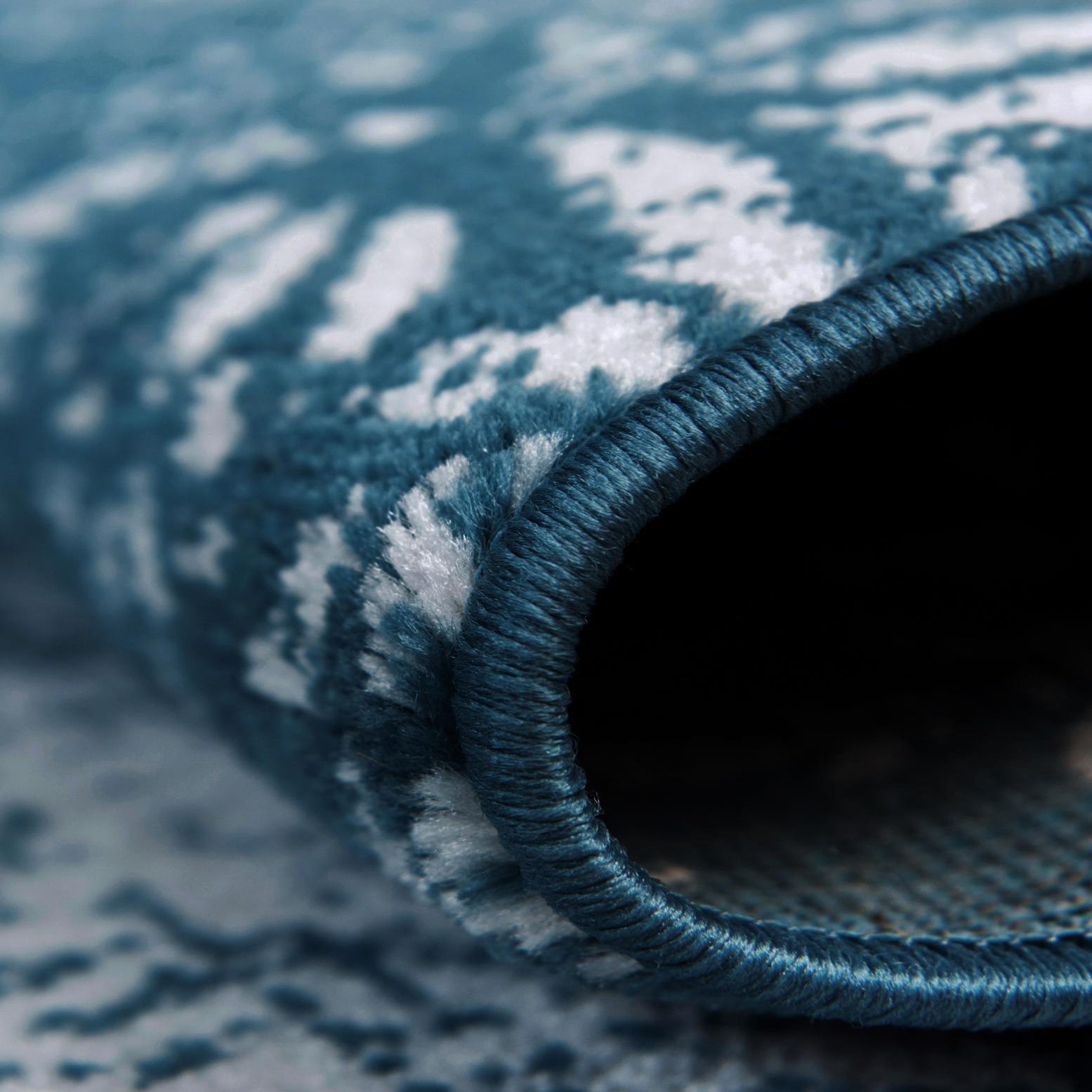 Primary color is Blue. Colors in this rug include: Blue, Ivory.