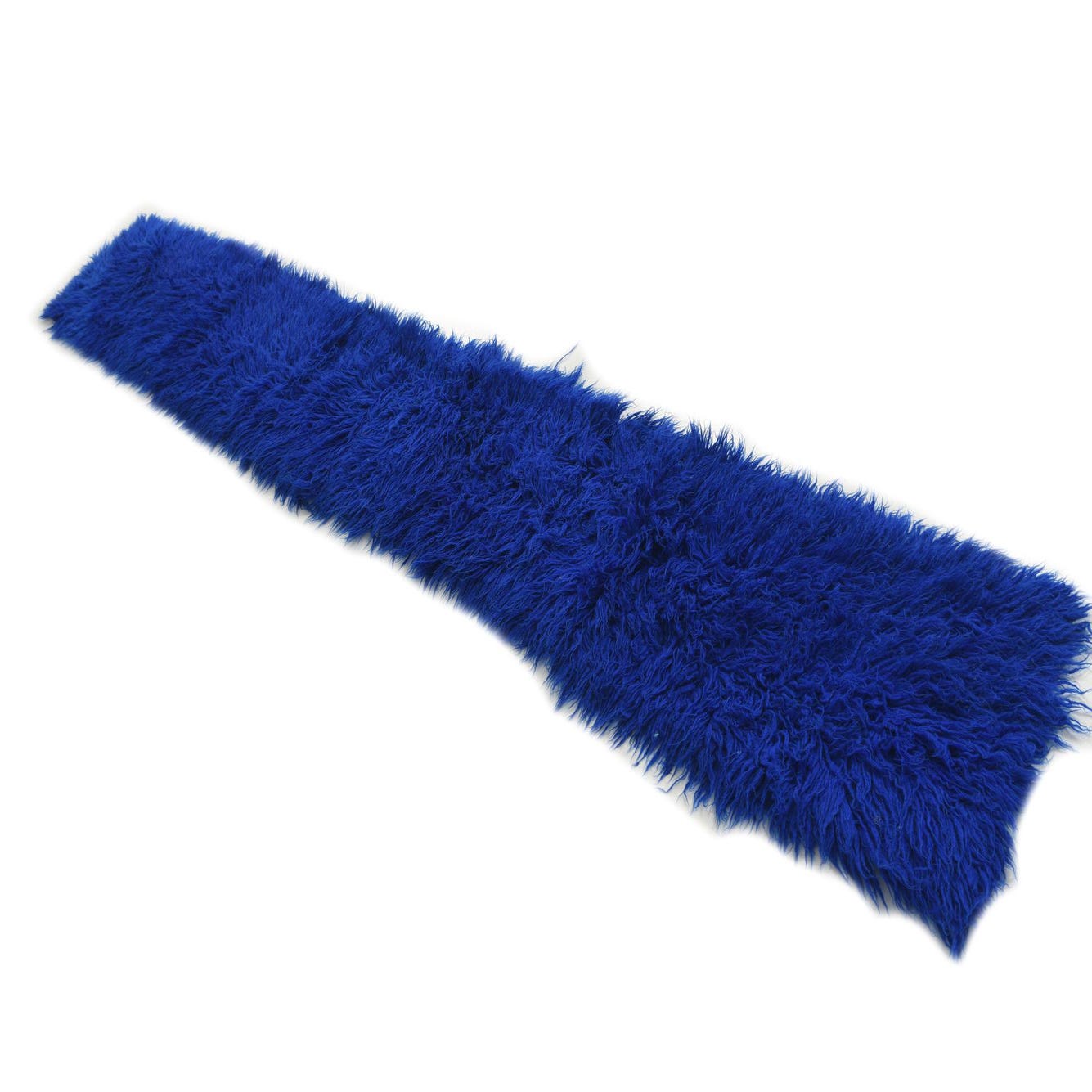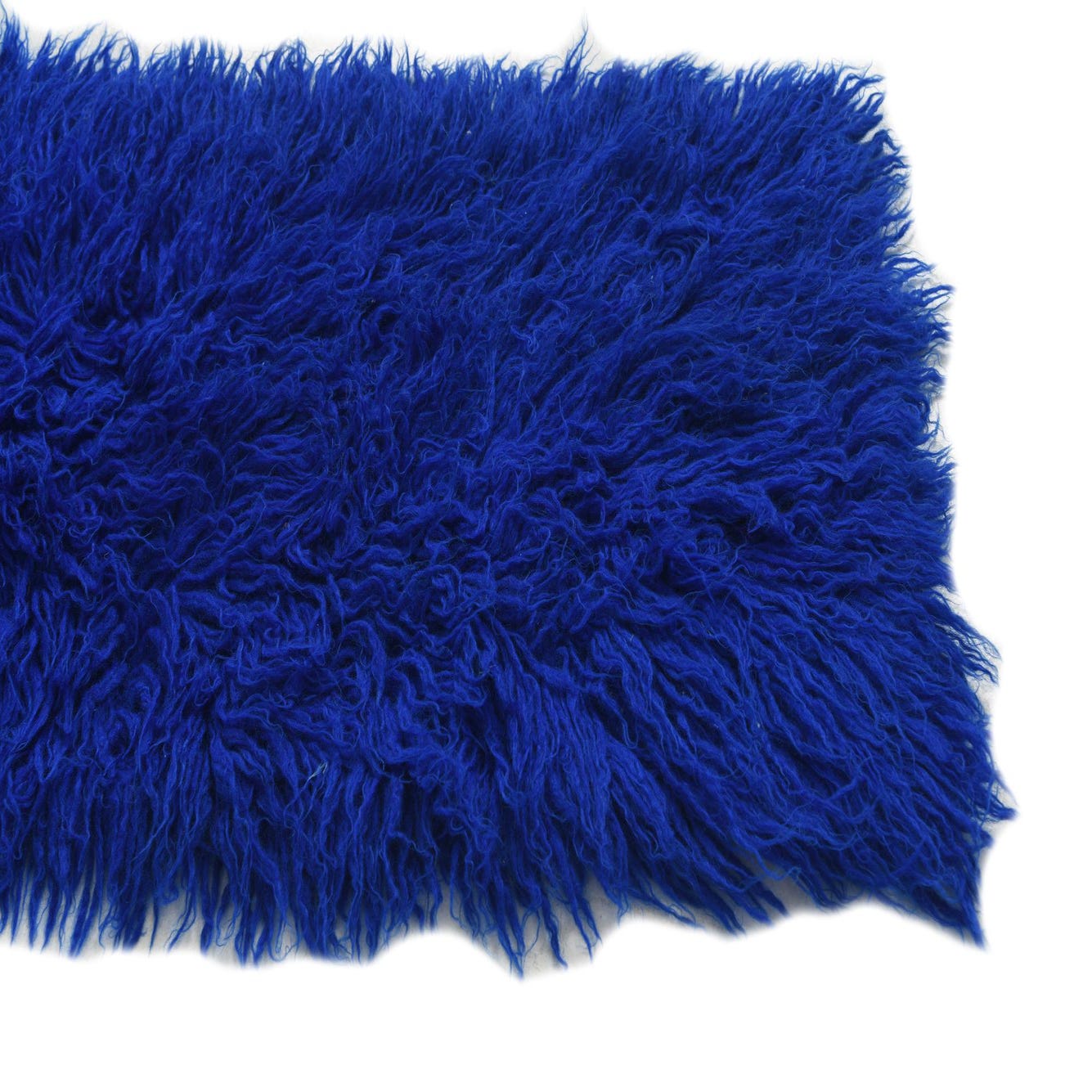 A vibrant 13 ft blue shag runner rug, handmade from wool, perfect for adding a modern tribal touch to a hallway.