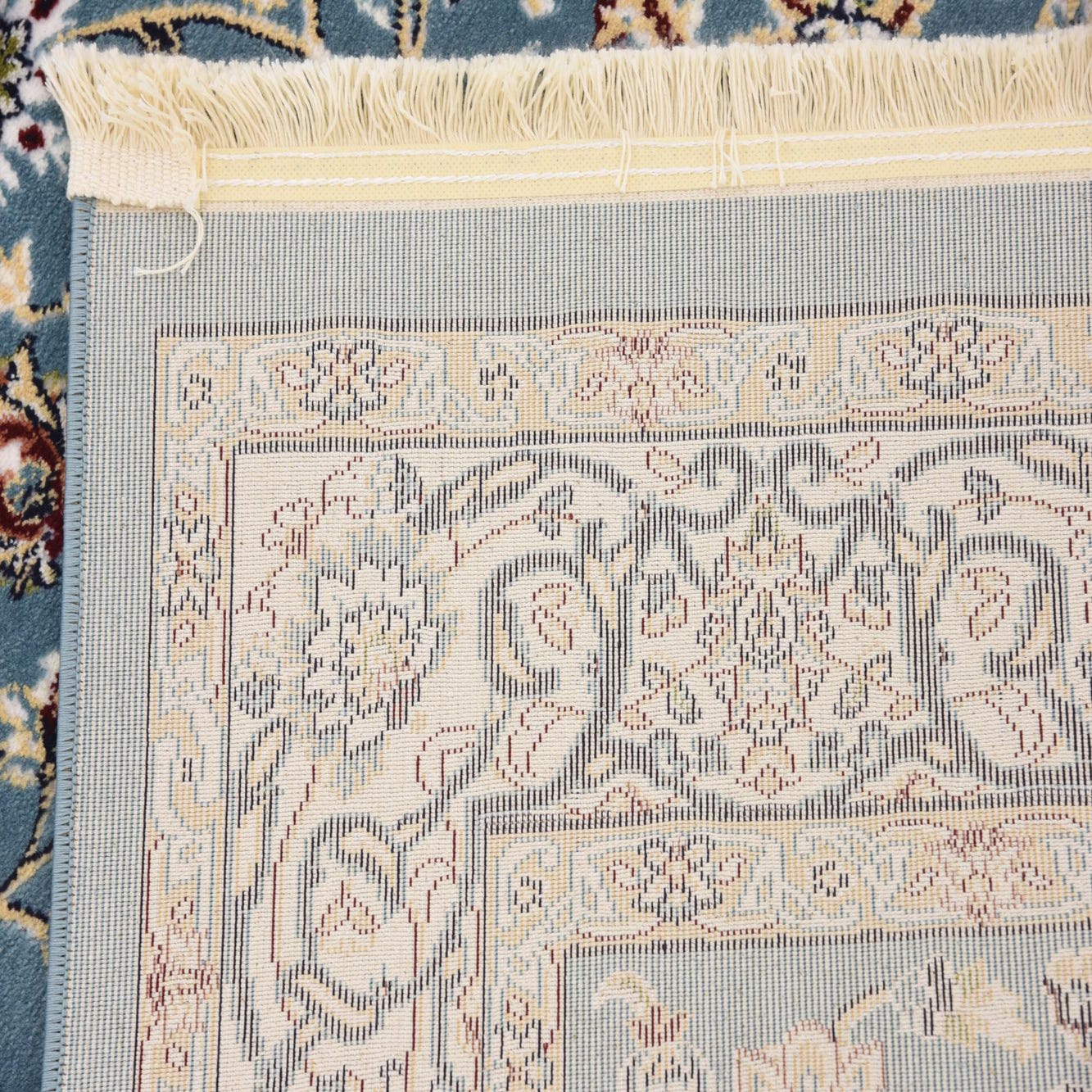 Crafted for longevity and resilience, the rug's fabrication ensures it is both stain-resistant and shed-free, maintaining its appearance over time with regular use. The fringe detailing at each end adds a classic touch, enhancing the textile's visual appeal.