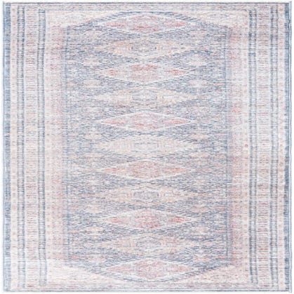 Primary color is Blue. Colors in this rug include: Blue, Beige, Gray, Ivory, Red, Pink.