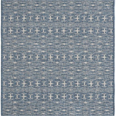 Primary color is Blue. Colors in this rug include: Blue, Gray.