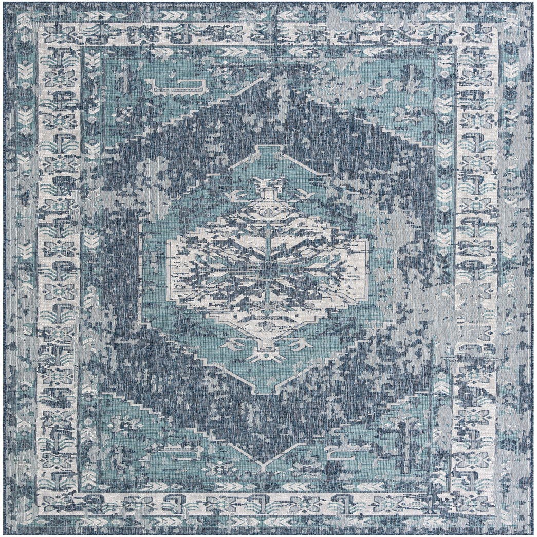 Primary color is Blue. Colors in this rug include: Blue, Ivory, Light Blue, Navy Blue.