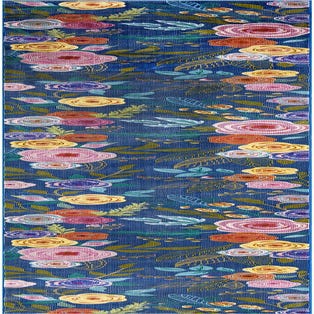 This long runner is well suited to narrow spaces where a splash of pattern can energize the room: hallways, entryways, kitchen aisles or alongside a bed. The deep blue ground anchors both warm and cool tones, pairing nicely with light- to medium-toned wood floors, white trim and relaxed, cottage or coastal furnishings. It also works in eclectic or transitional schemes—pair with neutral upholstery to highlight the colors or layer with textured pillows and brass or wooden accents to build a warm, collected look.