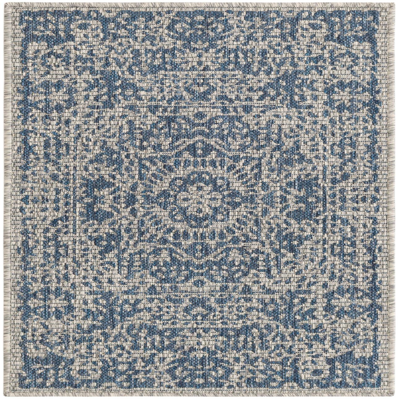 Primary color is Blue. Colors in this rug include: Blue, Gray.