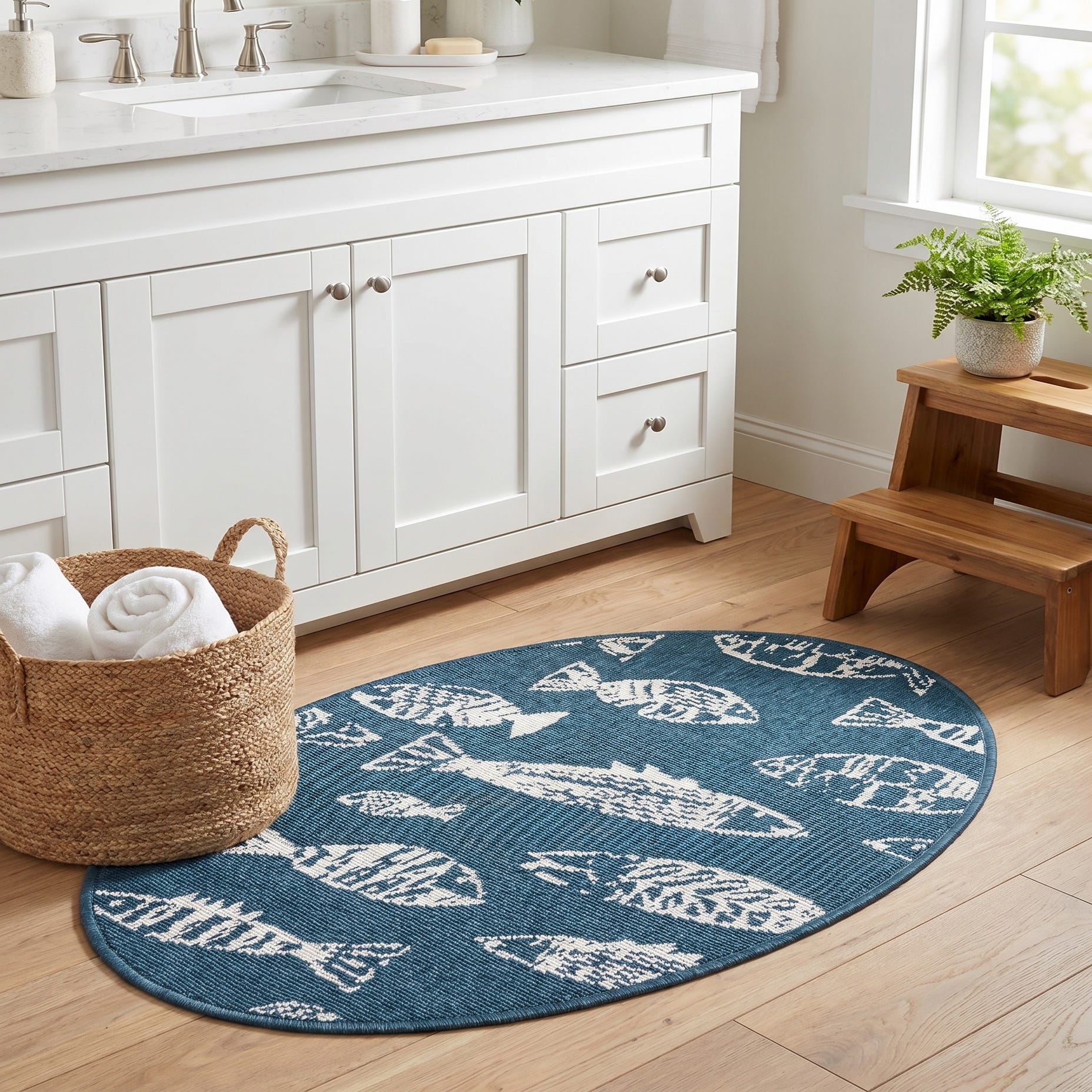 2' x 3' Easy-Clean Coastal Indoor / Outdoor Oval Rug
