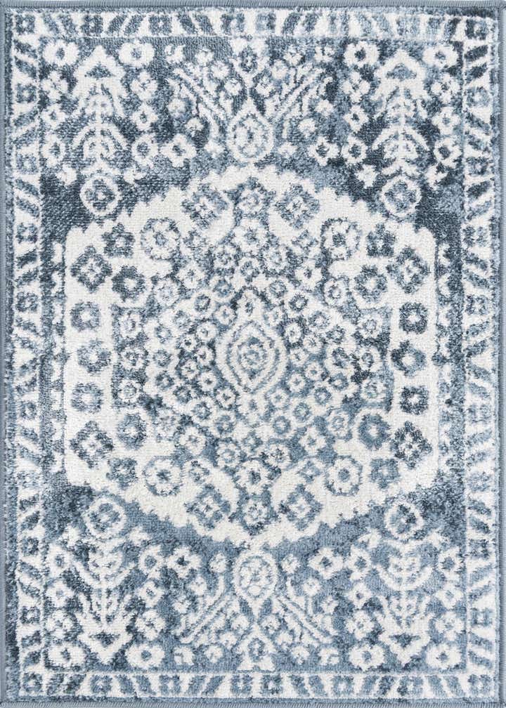 Primary color is Blue. Colors in this rug include: Blue, Ivory.