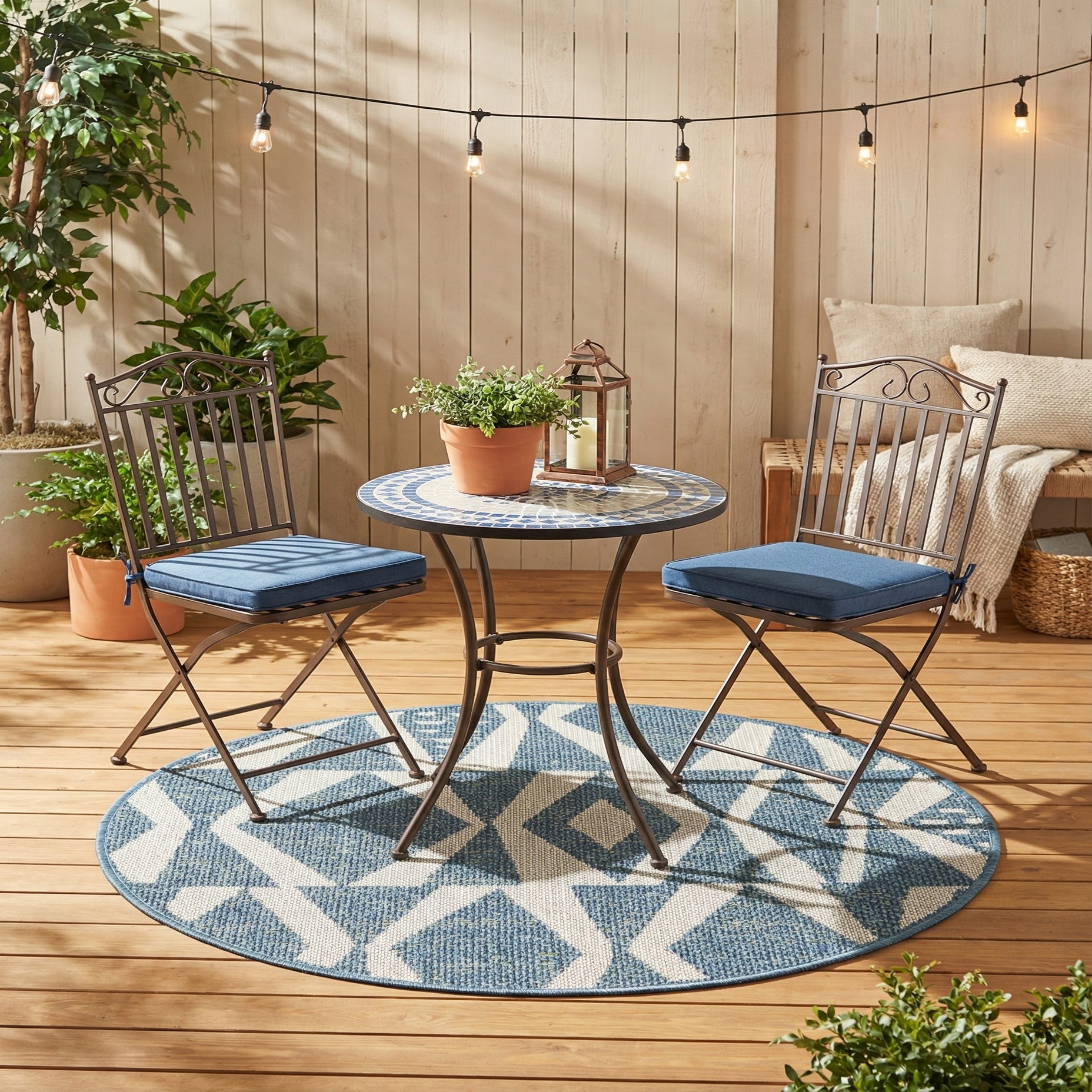 Woven from 100% polypropylene, this round rug works well in outdoor settings as well as covered indoor spaces where a resilient, low-pile surface is preferred. Place it beneath a bistro table on a balcony, under an outdoor dining set, or in a screened-in porch to add pattern without overwhelming the space. It also pairs nicely with coastal, modern farmhouse, or mid-century inspired decor and layers neatly over natural fiber rugs for added interest on a patio or sunroom floor.
