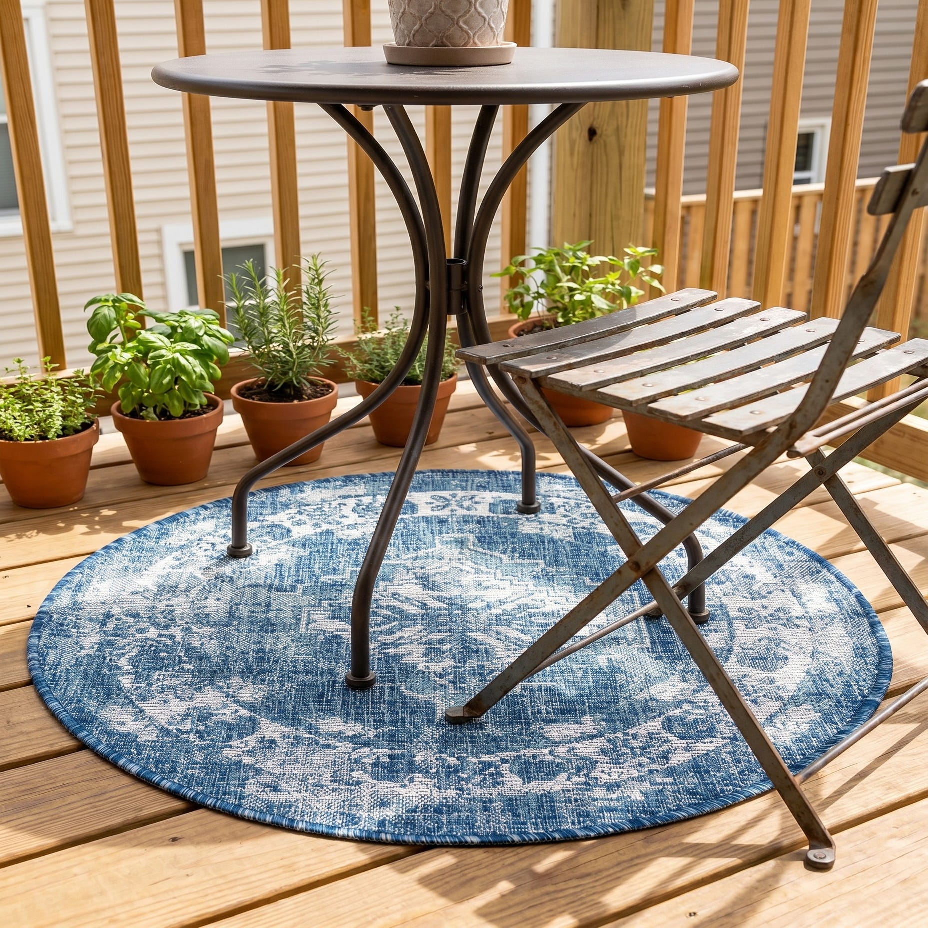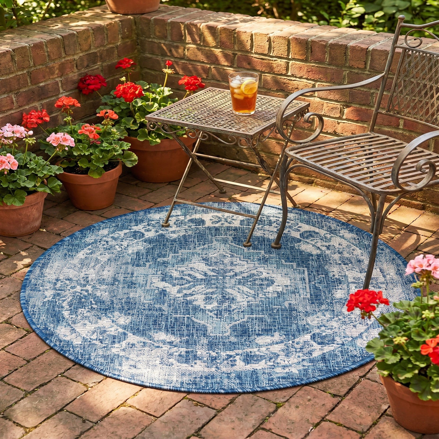 3' x 3' Easy-Clean Traditional Indoor / Outdoor Round Rug