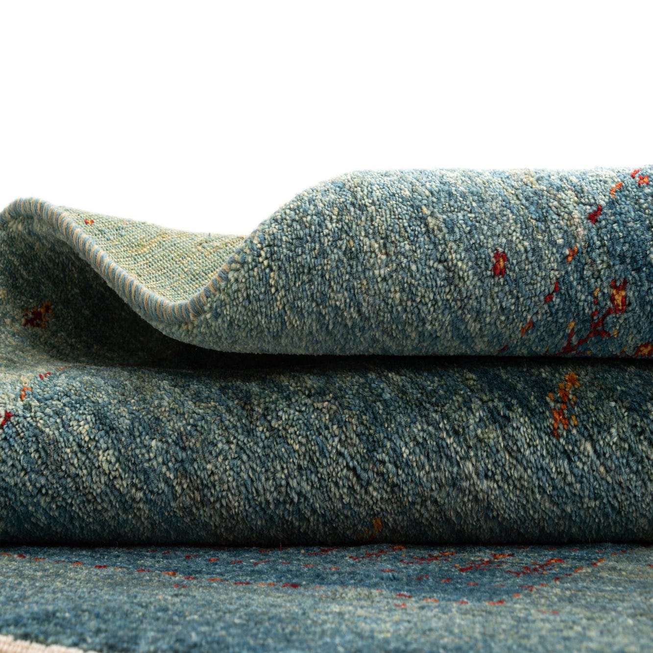 A 3x4 rectangular blue Persian wool rug with a subtle border and small orange accents.