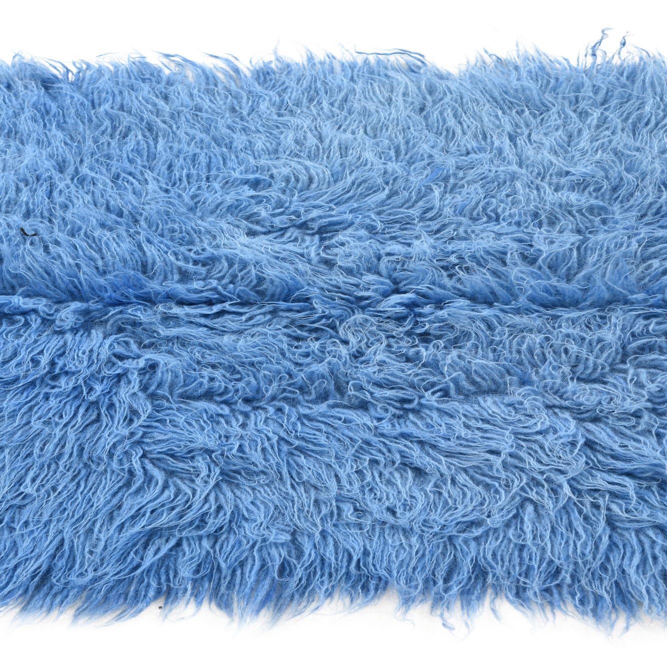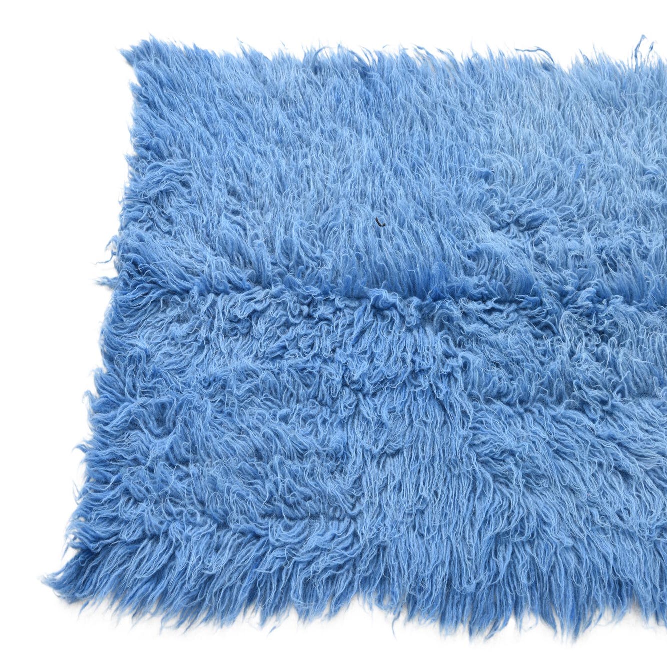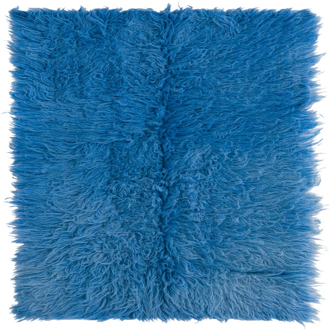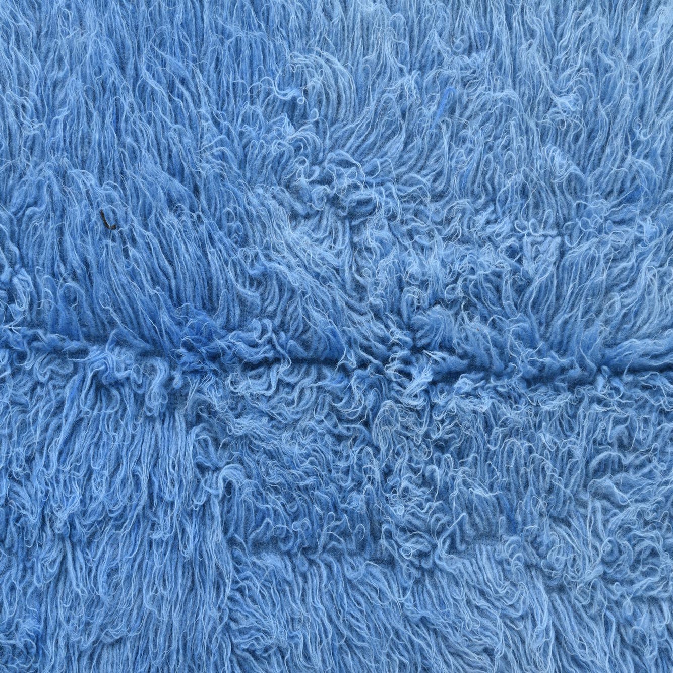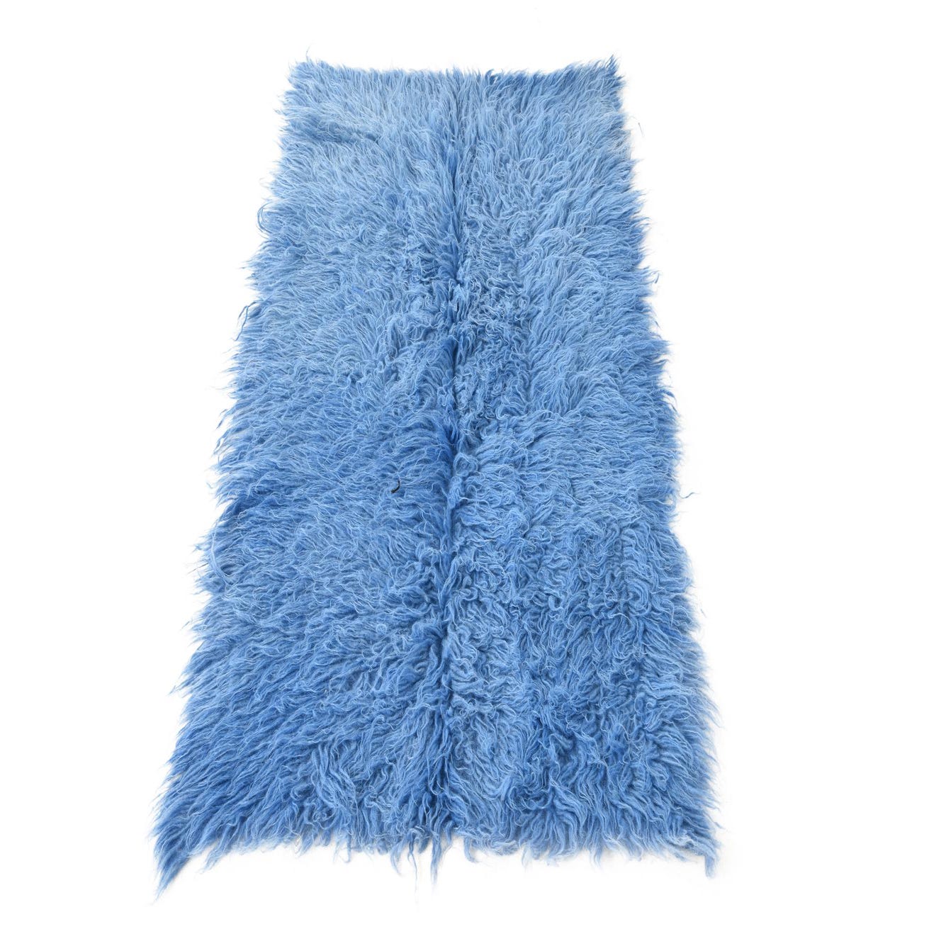 A vibrant 3x4 rectangular blue shag rug made of 100% wool, featuring a plush, shaggy texture.