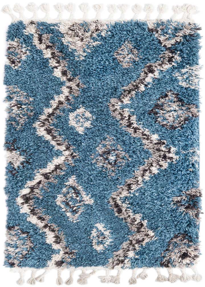 Primary color is Blue. Colors in this rug include: Blue, Ivory, Light Blue, Gray.