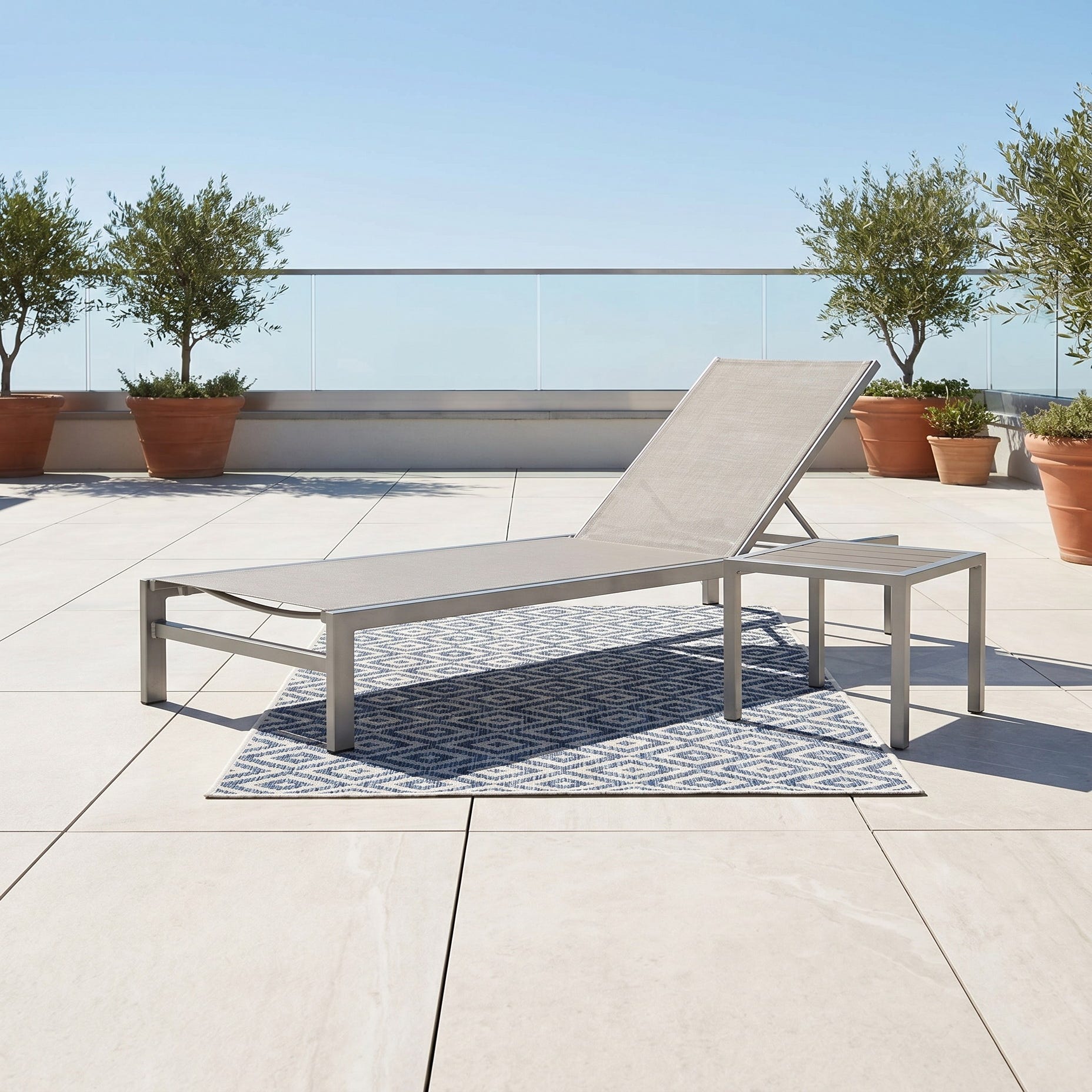 • Navy sling fabric lounge chair