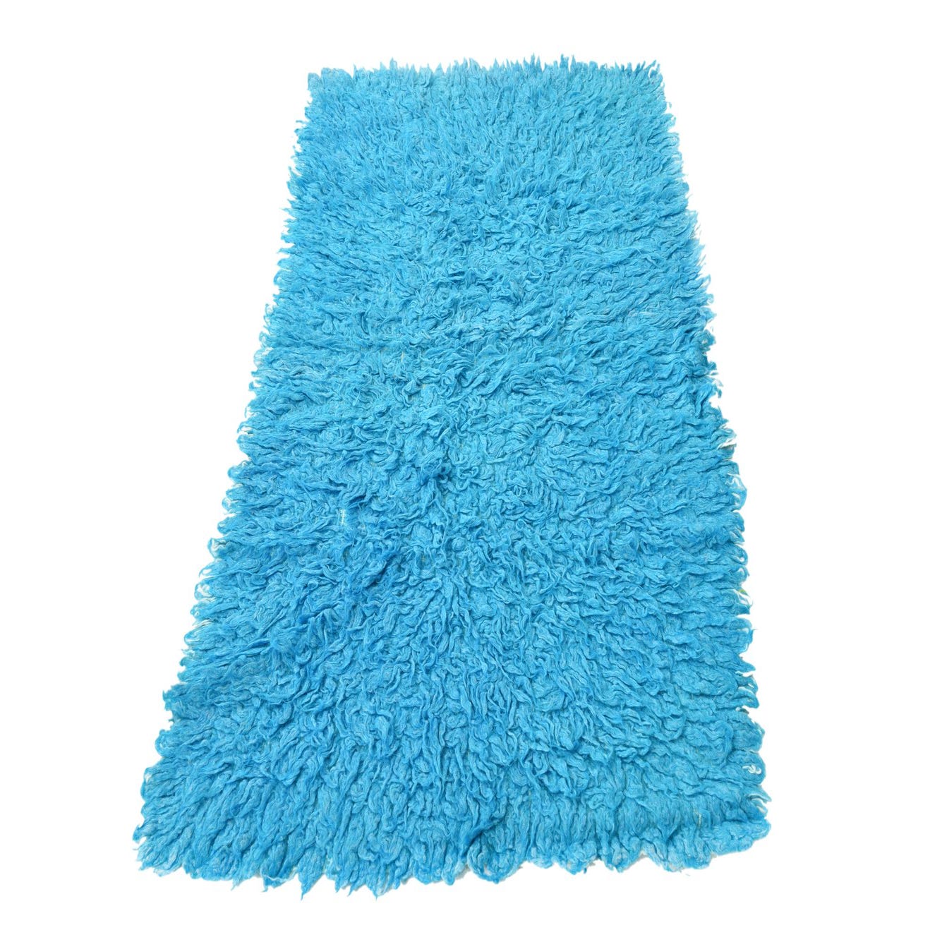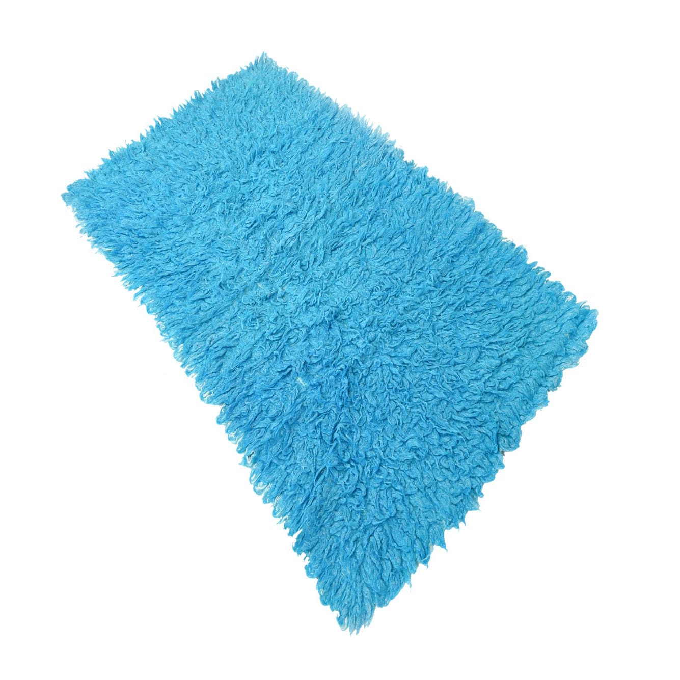 A vibrant 3x5 rectangular shag rug in a bright blue color, featuring a plush, textured wool pile.