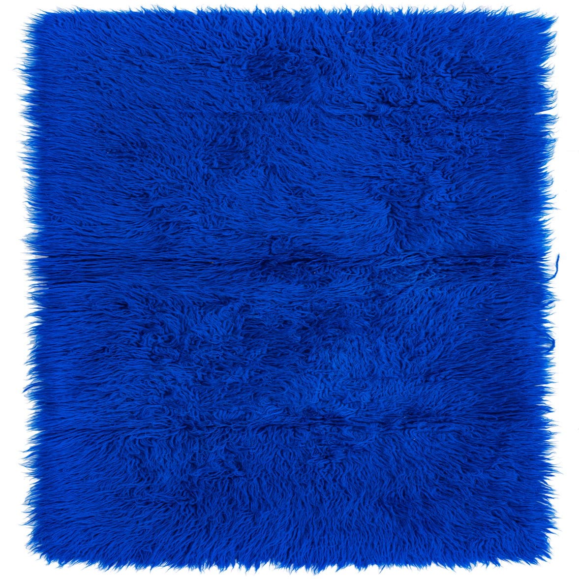 A vibrant 3x5 rectangular blue shag rug with a plush, high pile, perfect for adding texture.