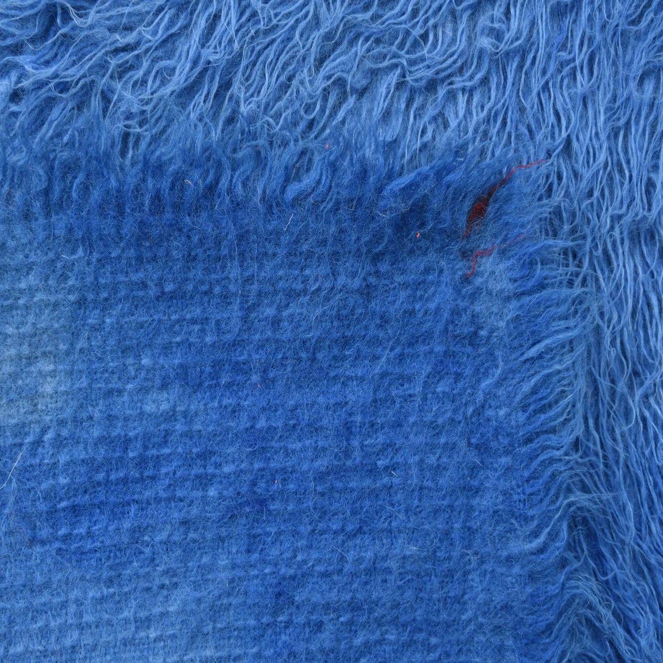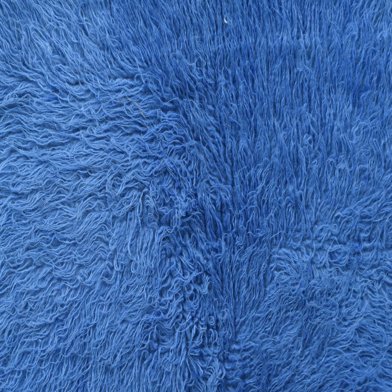A vibrant 3x5 rectangular blue shag rug with a plush, high pile, showcasing its soft texture.