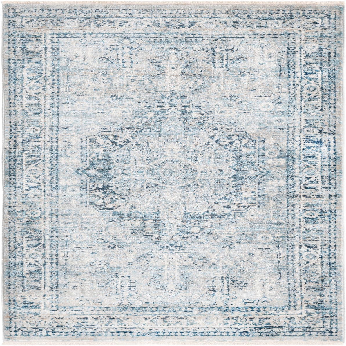 Primary color is Blue. Colors in this rug include: Blue, Ivory, Navy Blue.