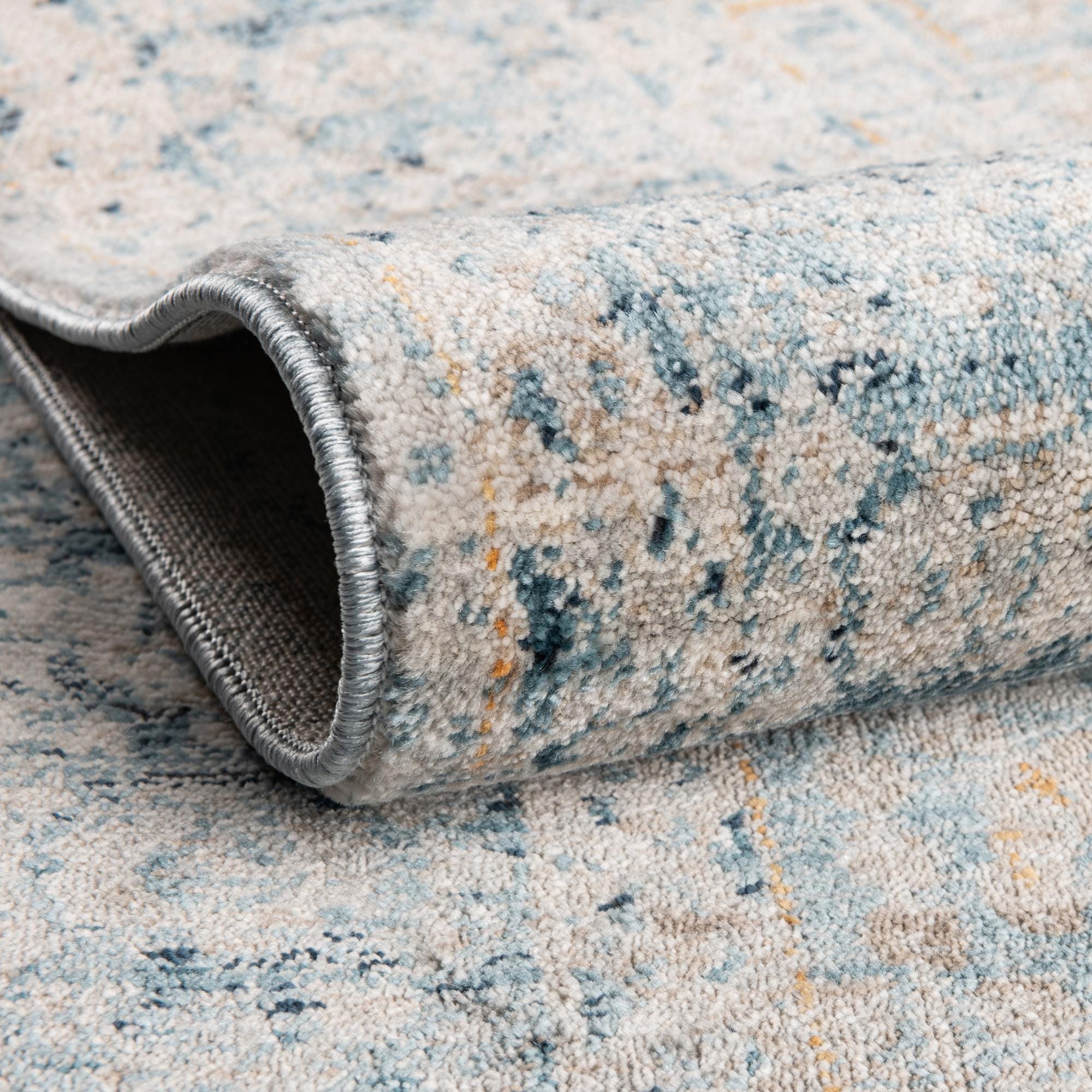 Primary color is Blue. Colors in this rug include: Blue, Ivory, Light Blue, Navy Blue, Beige.