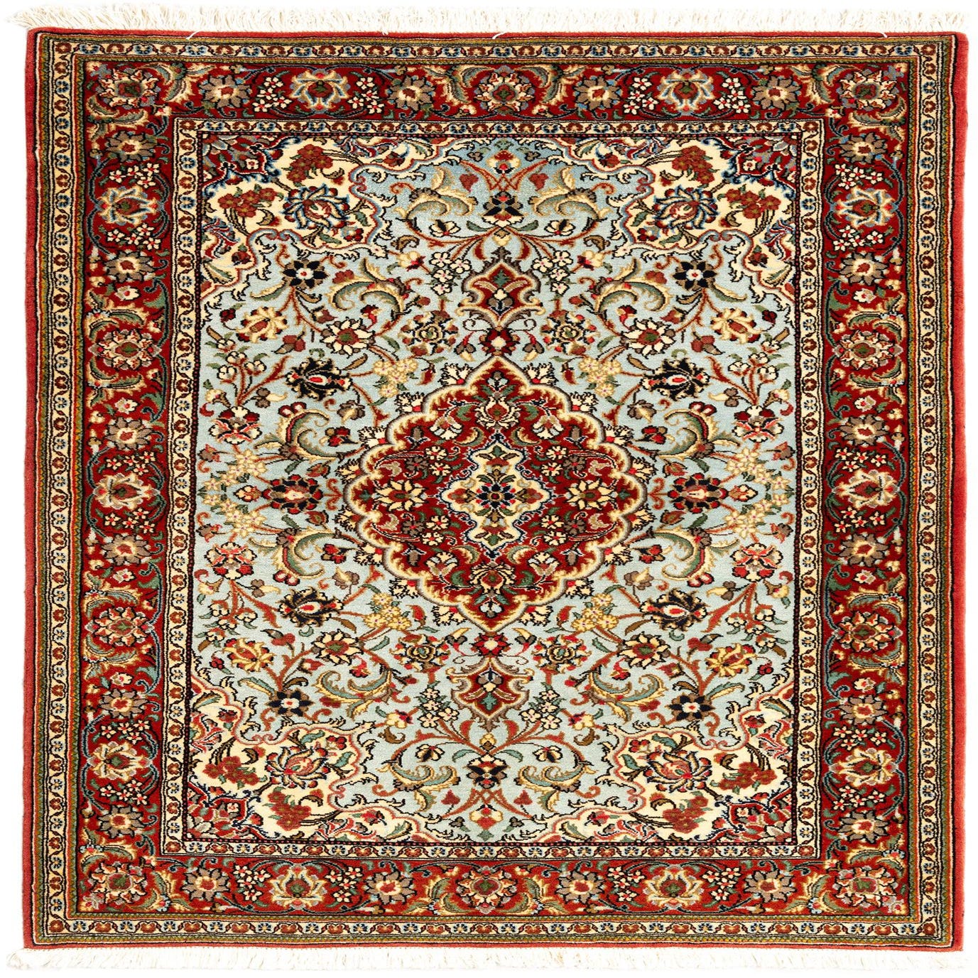 The Ghom collection offers a hand-made wool rug that is both durable and aesthetically appealing. This particular 3x5 piece features a rich blue background that serves as a canvas for an intricate array of traditional floral and botanical motifs. Accent colors that adorn this rug include shades of red, gold, ivory, and subtle touches of green, which collectively create a harmonious and vibrant palette.