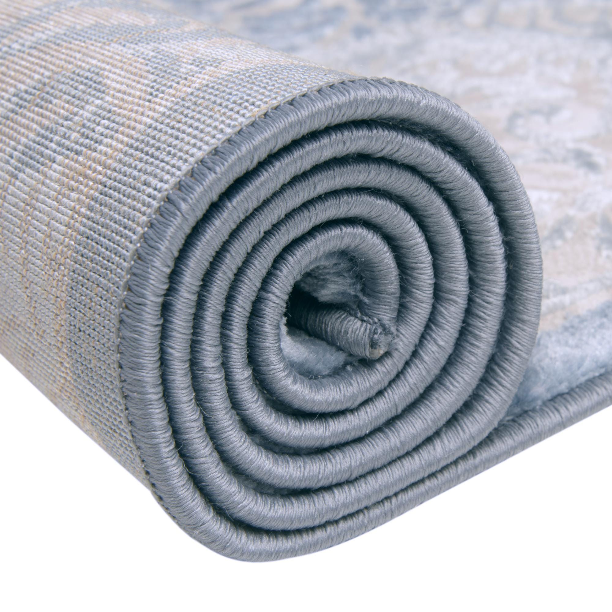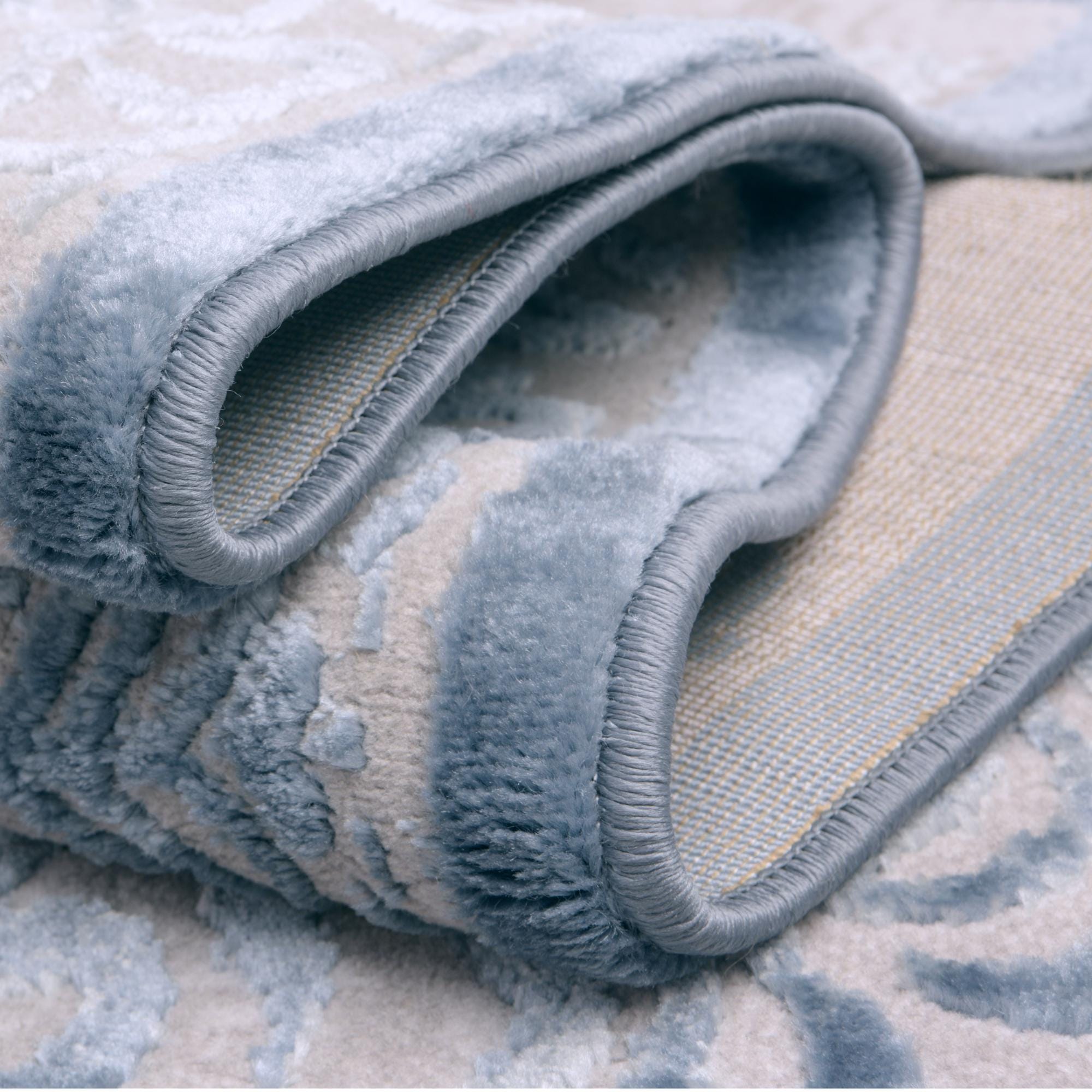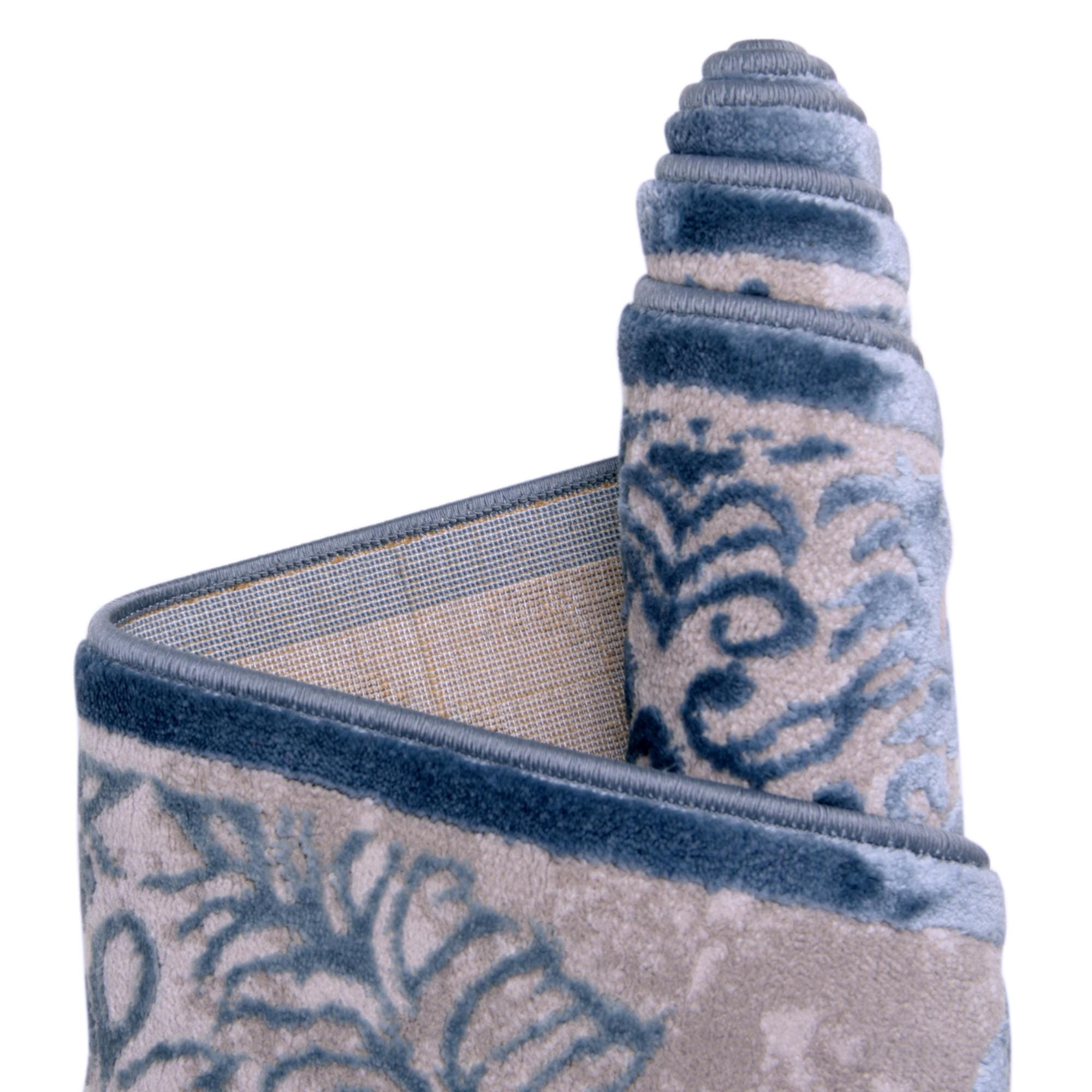Primary color is Blue. Colors in this rug include: Blue, Beige, Light Blue.
