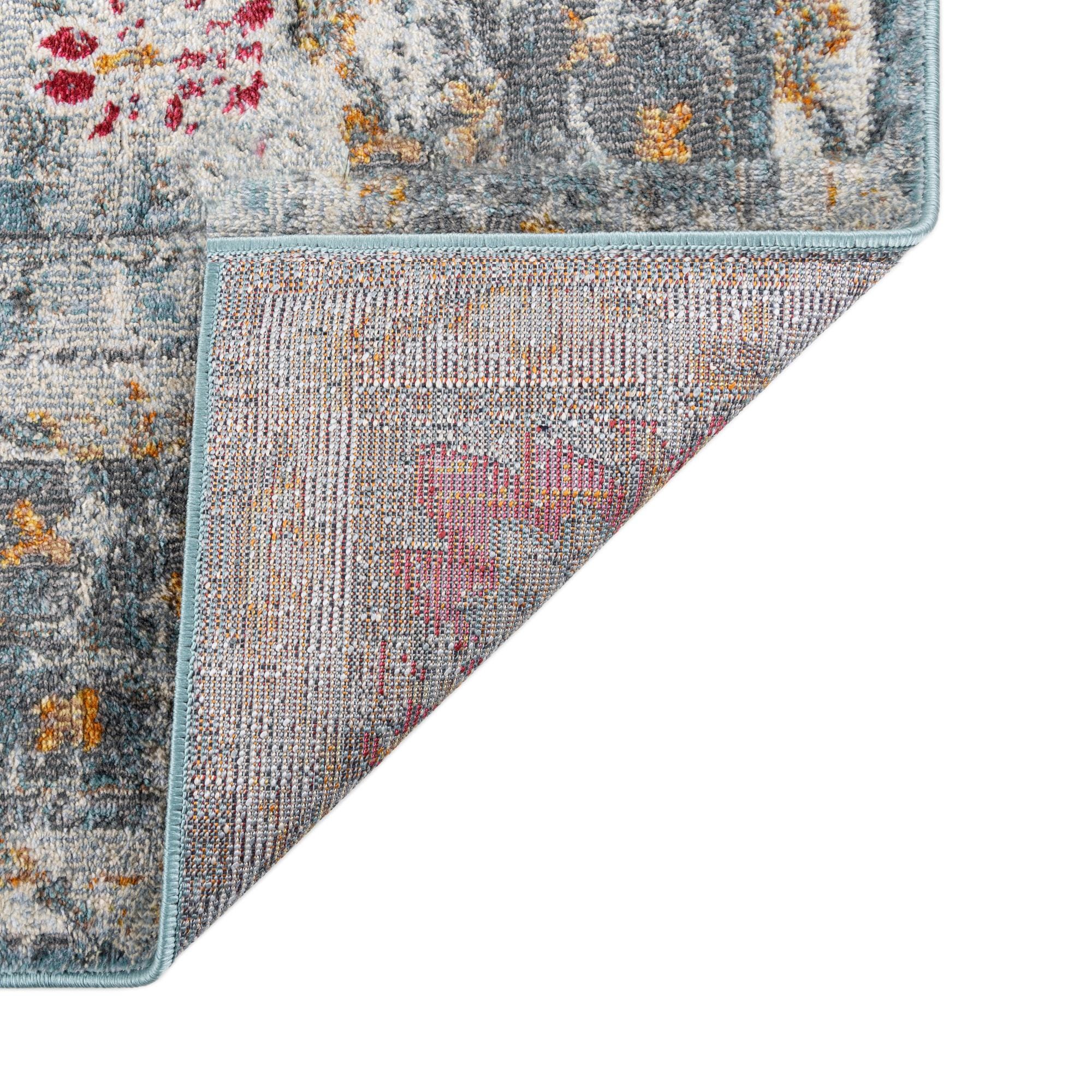 Machine made from 100% polypropylene, this piece offers an easygoing aesthetic that works well in a variety of settings. Use it to anchor an entry or foyer, place it beneath a round pedestal table, or layer it in a cozy seating nook; the octagon shape adds architectural interest in compact areas. The cool blue and gray palette pairs nicely with neutral sofas and warm wood tones, and the pops of red and orange provide an unexpected lift for coastal, transitional, cottage, or modern-traditional interiors.